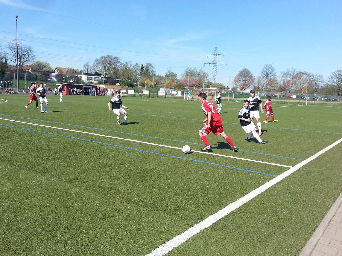 Die erste Chance des Spiels hatte FCR-Spielertrainer Christian Puff. In der 5. Minute schoss Puff einen Freistoß von der linken Seite scharf auf den langen Pfosten, doch Torhüter Pascal Bernd konnte mit einer schönen Flugeinlage parieren. 3 Minuten später näherte sich die Spvgg erstmals dem von Marco Kaucher gehüteten Tor. Jens Lorang flankte von der rechten Seite und fand mit Nils Welter in der Mitte einen Abnehmer. Welters Kopfball ging knapp am rechten Pfosten vorbei. Danach spielte sich das Geschehen überwiegend im Mittelfeld ab, Torraumszenen gab es kaum welche. 26 Minuten waren mittlerweile gespielt, da entschieden sich die Gäste das Tempo etwas anzuziehen. Julian Fernsner kam über rechts vors Tor und schoss fest auf den Kasten. Kaucher parierte den Ball stark, hatte aber gegen den nachsetzenden Lorang keine Abwehrchance mehr, 1:0 für Quierschied. Das Tor war der Weckruf und gleichzeitiger Beginn einer Angriffswelle. In der 34. Minute war es wiederum Fernsner der im Strafraum abschließen konnte, mit links trullerte sein Ball am überraschten Kaucher vorbei in die Maschen. 2:0 für die Wambe und damit eine beruhigende Führung gegen den Abstiegskandidaten. Rastpfuhl wirkte geschockt, produzierte immer mehr Fehlpässe. Dies wurde aber auch von einer jetzt energischeren Spvgg erzwungen. Und so fiel noch vor dem Pausentee das vorentscheidende dritte Tor für die Gäste. Erneut war es Fernsner nach Vorlage seines Mannschaftskameraden Welter. 3:0 zur Pause, bei strahlendem Sonneneschein konnten die Quierschieder Anhänger in Ruhe ihre Halbzeitwurst genießen.