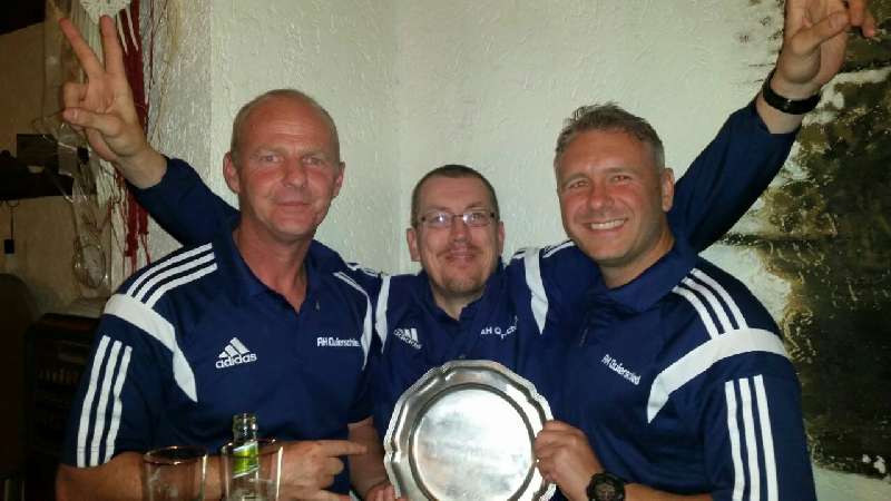 Unsere AH-B hat es geschafft! Am vergangenen Samstag gewann unsere Mannschaft auf dem Kunstrasenplatz in Winterbach gegen die Spielgemeinschaft Humes/Bubach/Eppelborn mit 2:0. Damit sicherte sich unsere Mannschaft die Saarlandmeisterschaft. Torschützen gegen den Meister aus dem Nordosten waren Dirk Maurer und Thomas Spaniol. Unsere „Oldies“ verkauften die Spvgg bestens und auch die vielen mitgereisten Quierschieder Anhänger sorgten für beste Stimmung in Winterbach. Für das Spiel wurde sogar ein Fanbus organsiert. Nach dem erfolgreichen Spiel und der Übergabe des Meistertellers an unsere Jungs wurde zunächst in Winterbach kräftig gefeiert, danach ging es für die Mannschaft und Fans ins Gasthaus „zum Papschd“ zur gemeinsamen Saarlandmeister-Party. Das hatten sich alle auch verdient.