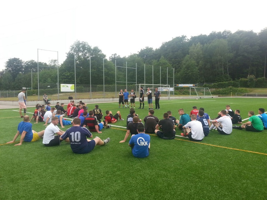 Am vergangenen Freitag fiel für unsere Aktiven der Startschuss zur Sommer-Vorbereitung. Über 40 Spieler fanden sich zum ersten Training der Saison 2015/2016 auf dem Sportplatz am Franzenhaus ein. Dabei begrüßte der Vorstand alle Spieler, Betreuer und Trainer und wünschte ihnen eine erfolgreiche, verletzungsfreie Saison. Chefcoach Markus Woll stellte anschließend die Neuzugänge der 1. Mannschaft vor. Als Saisonziel in der Verbandsliga gab Woll an, im vorderen Drittel der Tabelle mitspielen zu wollen. Nach dem guten 7. Platz in der Vorsaison möchte man in dieser Runde ein wenig mehr, als nur um die „goldene Ananas“ zu spielen. Dabei soll die Mannschaft aber keinen Druck verspüren, vor allem weiterhin die gute Kameradschaft pflegen und mit Spaß bei der Sache sein. Anschließend kam der neue Trainer der 2. und 3.Mannschaft, Dirk Groß zu Wort. Dabei betonte er, dass er sich sehr auf die neue Herausforderung freue und mit den Reserveteams der Wambe „neue Wege gehen möchte“. Sowohl im Training als auch im Spiel will er sich dem modernen Fußball anpassen. Mit viel Euphorie und jeder Menge Trainingseifer will er mit der 2. Mannschaft in der Bezirksliga Saarbrücken eine gute Rolle spielen. Dabei kann er auf die Unterstützung von dem letztjährigen Betreuer der 3. Mannschaft, Thommy Nawrath zählen. Er wird Groß als Co-Trainer zur Seite stehen und dafür sorgen, dass auch die 3. Mannschaft topfit in die neue Runde gehen wird. In den nächsten Wochen stehen viele Trainingseinheiten und Testspiele auf dem Programm, diese sind im Vorbereitungsplan ersichtlich: Sommervorbereitung Saison 2015_16