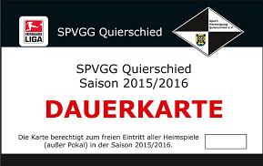 Auch für die Saison 2015/2016 bietet die Spvgg Quierschied ihren treuen Anhängern wieder den Kauf einer Dauerkarte an. Dabei haben interessierte Zuschauer die Möglichkeit eine Dauerkarte mit Gültigkeit für die Verbandsliga-Heimspiele oder für den Gesamtspieltag (alle Heimspiele Kreis-/Bezirks- und Verbandsliga) zu erwerben. Für Pokalspiele haben die Dauerkarten keine Gültigkeit.