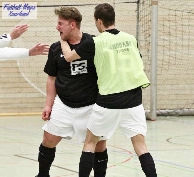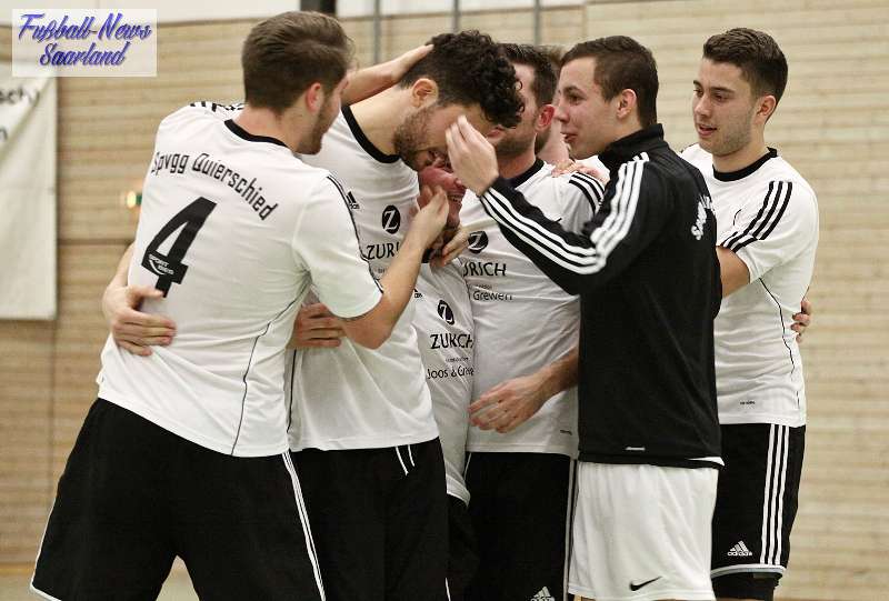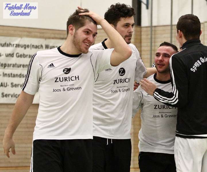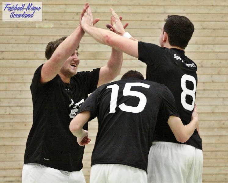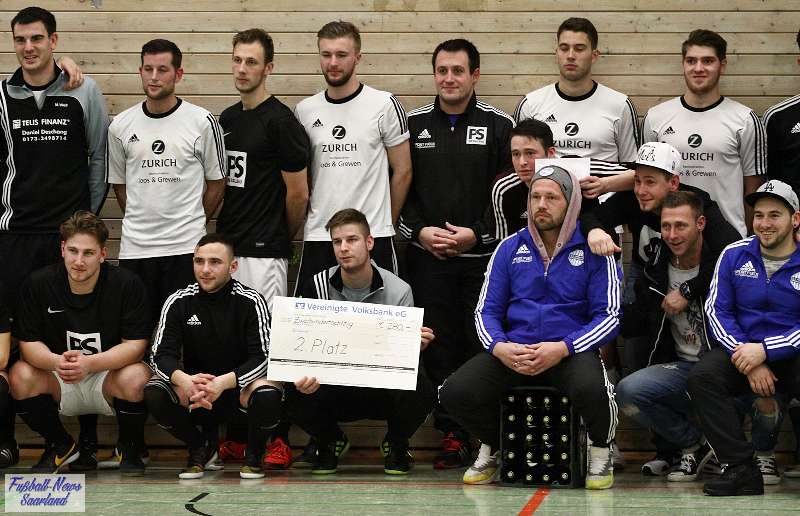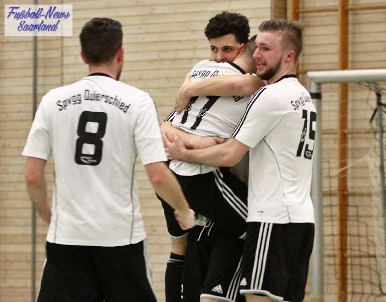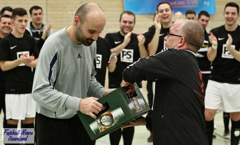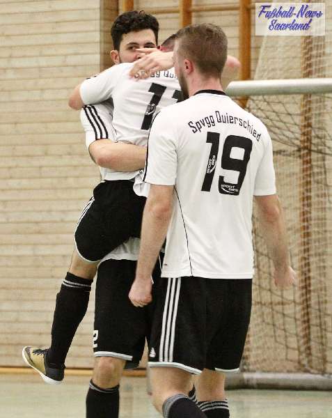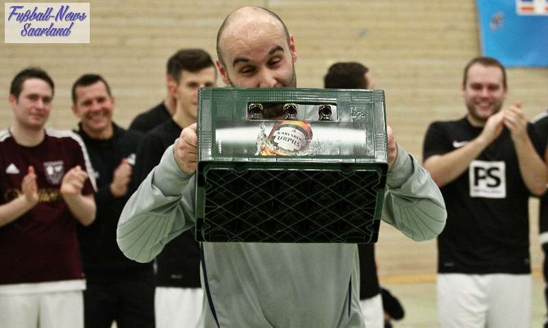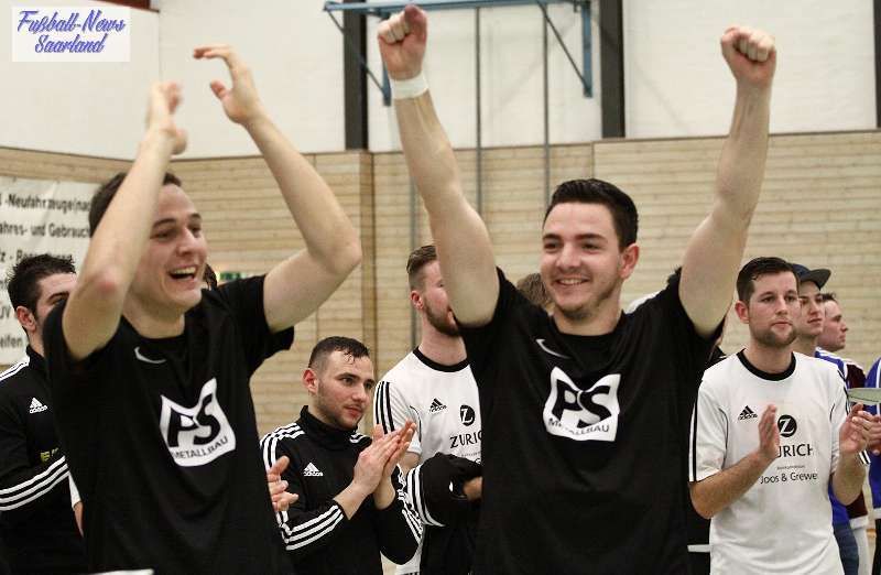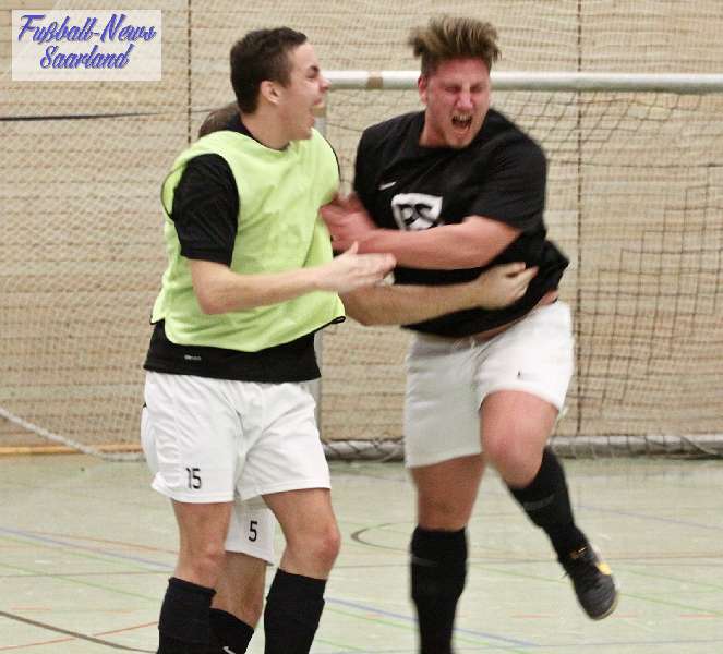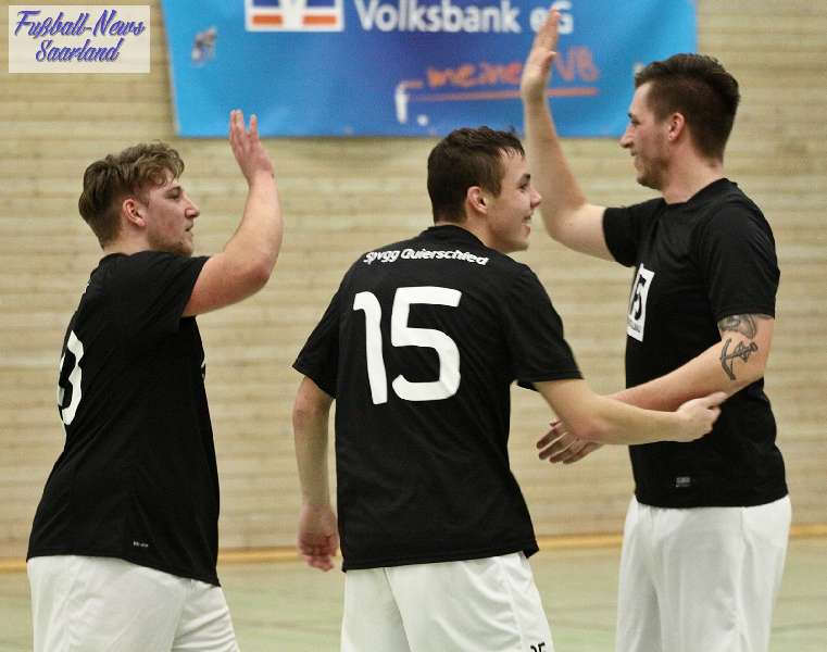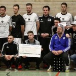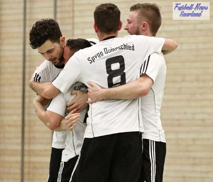 Beim 26. VVB-Masters der DJK Bildstock gab es am vergangenen Wochenende eine dicke Überraschung. Denn unsere 2. Mannschaft gewann das Hallenturnier in der Helenenhalle Friedrichsthal – und dies im Quierschieder Finale gegen unsere 1. Mannschaft. Eine tolle Leistung unserer Bezirksligamannschaft, die sich an diesem Tag durch eine super Einstellung und ein ganz großes Kämpferherz auszeichnete. Zudem spielte Torwart Andreas Jung eine überragende Endrunde und war vor allem im Halbfinale unbezwingbar. Doch der Reihe nach. Am Freitagabend qualifizierte sich unsere 2. Mannschaft mit 7 Punkten als Gruppenzweiter hinter dem SV Rohrbach für die Endrunde. Einen Tag später war dann unsere 1. Mannschaft dran. Sie wurde Gruppensieger und holte die volle Punktzahl mit 9 Punkten aus drei Vorrundenspielen. Die Spielplan-Konstellation ergab bereits in der Zwischenrunde das Quierschieder Duell. Mit 2:1 gewann unsere Zweite gegen die Erste. Unsere Zweite spielte danach zweimal Unentschieden gegen den TuS Wiebelskirchen und den SV Ritterstraße. Unsere Erste konnte dagegen zwei Siege gegen diese beiden Teams einfahren und wurde somit Gruppensieger vor der Truppe von Dirk Groß. In den Halbfinals ging es dann vor den vielen mitgereisten Quierschieder Fans in der gut gefüllten Helenenhalle richtig zur Sache. In einem sehr spannenden Spiel gewann unsere 2. Mannschaft gegen den Landesligisten Hellas Bildstock mit 1:0. Garant war „Anton“ Jung der die Hellas mit spektakulären Paraden zur Verzweiflung brachte. Unsere 1. Mannschaft bekam es im ewigen Hallenduell mit der Saarlandligamannschaft DJK Bildstock zu tun. Auch dieses Spiel war bis zur letzten Sekunde spannend. Letztlich gewann unsere 1. Mannschaft mit 7:6 nach Siebenmeterschießen. Somit kam es tatsächlich zum Vereinsduell Quierschied 1- Quierschied 2. Unsere 1. Mannschaft führte früh, doch die Zweite konnte das Spiel drehen und mit 2:1 in Führung gehen. 5 Minuten vor dem Ende gab es eine sehr zweifelhafte Schiedsrichter Entscheidung. Dennis Eickhoff wehrte mit einer Grätsche einen Ball ab. Dabei rutschte er aus dem Strafraum, spielte aber für alle in der Halle sichtbar, ganz klar den Ball. Da das grätschen außerhalb des Strafraums nach den neuen Regeln verboten ist, gab es Freistoß für die Zweite. Aber: Der Schiri zückte die rote Karte. Das hat niemand verstanden und auch der bei der Turnierleitung anwesende Kreisleiter wertete dies als absolute Fehlentscheidung. Diese Aktionen gab es im gesamten Turnierverlauf und wurde oft nicht einmal mit gelb geahndet. Quierschied 1 schaffte noch in Unterzahl den Ausgleich, bekam aber gegen Ende des Spiels mit Yannick Schneider als Torhüter zwei Gegentreffer, sodass die Partie mit 4:2 für die 2. Mannschaft endete. Eine tolle Leistung unserer beiden Mannschaften! Ein ganz dickes Lob geht auch an die zahlreichen Quierschieder Anhänger, die für tolle Stimmung in der Halle sorgten.