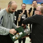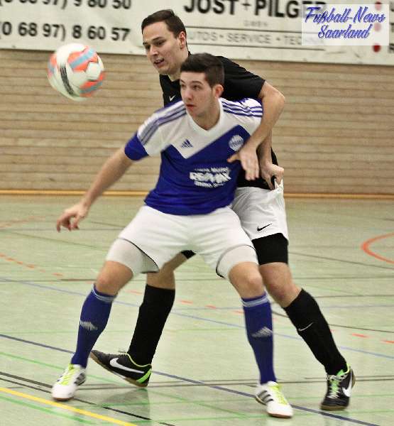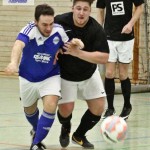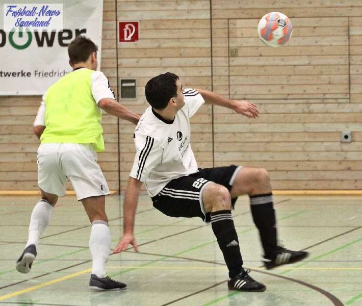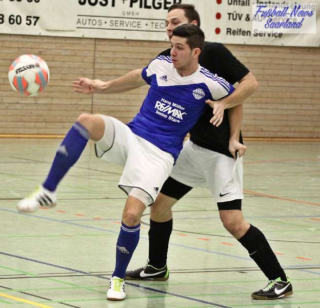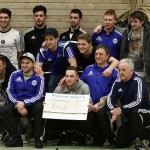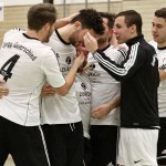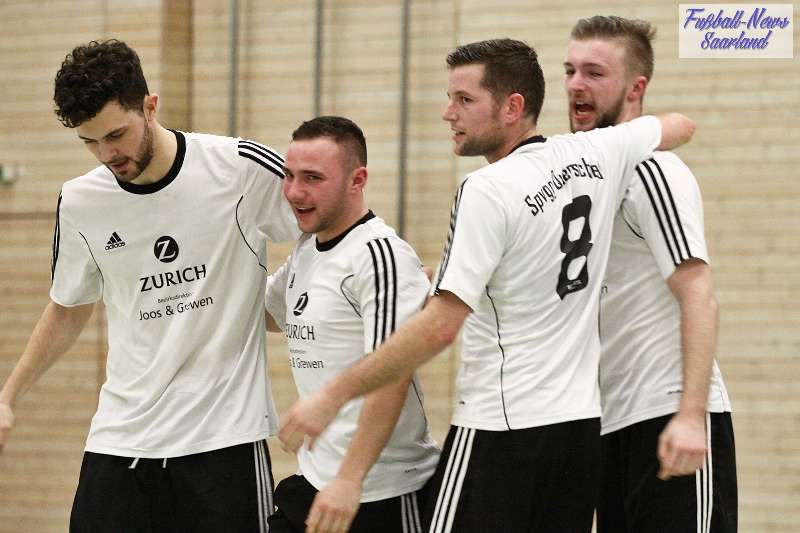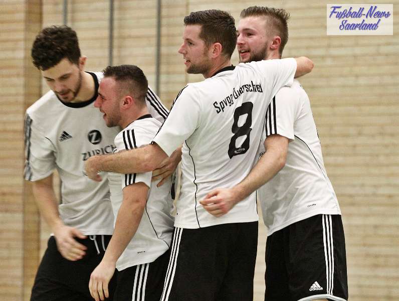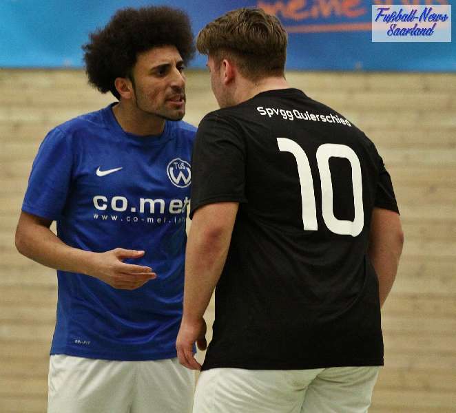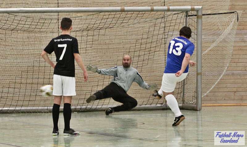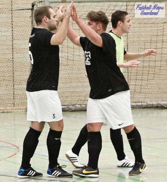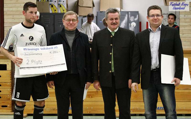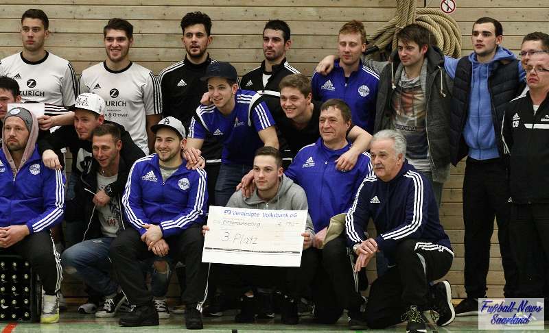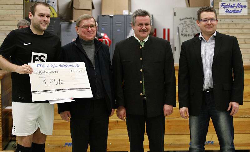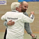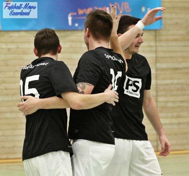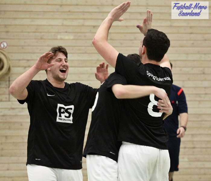 Beim 26. VVB-Masters der DJK Bildstock gab es am vergangenen Wochenende eine dicke Überraschung. Denn unsere 2. Mannschaft gewann das Hallenturnier in der Helenenhalle Friedrichsthal – und dies im Quierschieder Finale gegen unsere 1. Mannschaft. Eine tolle Leistung unserer Bezirksligamannschaft, die sich an diesem Tag durch eine super Einstellung und ein ganz großes Kämpferherz auszeichnete. Zudem spielte Torwart Andreas Jung eine überragende Endrunde und war vor allem im Halbfinale unbezwingbar. Doch der Reihe nach. Am Freitagabend qualifizierte sich unsere 2. Mannschaft mit 7 Punkten als Gruppenzweiter hinter dem SV Rohrbach für die Endrunde. Einen Tag später war dann unsere 1. Mannschaft dran. Sie wurde Gruppensieger und holte die volle Punktzahl mit 9 Punkten aus drei Vorrundenspielen. Die Spielplan-Konstellation ergab bereits in der Zwischenrunde das Quierschieder Duell. Mit 2:1 gewann unsere Zweite gegen die Erste. Unsere Zweite spielte danach zweimal Unentschieden gegen den TuS Wiebelskirchen und den SV Ritterstraße. Unsere Erste konnte dagegen zwei Siege gegen diese beiden Teams einfahren und wurde somit Gruppensieger vor der Truppe von Dirk Groß. In den Halbfinals ging es dann vor den vielen mitgereisten Quierschieder Fans in der gut gefüllten Helenenhalle richtig zur Sache. In einem sehr spannenden Spiel gewann unsere 2. Mannschaft gegen den Landesligisten Hellas Bildstock mit 1:0. Garant war „Anton“ Jung der die Hellas mit spektakulären Paraden zur Verzweiflung brachte. Unsere 1. Mannschaft bekam es im ewigen Hallenduell mit der Saarlandligamannschaft DJK Bildstock zu tun. Auch dieses Spiel war bis zur letzten Sekunde spannend. Letztlich gewann unsere 1. Mannschaft mit 7:6 nach Siebenmeterschießen. Somit kam es tatsächlich zum Vereinsduell Quierschied 1- Quierschied 2. Unsere 1. Mannschaft führte früh, doch die Zweite konnte das Spiel drehen und mit 2:1 in Führung gehen. 5 Minuten vor dem Ende gab es eine sehr zweifelhafte Schiedsrichter Entscheidung. Dennis Eickhoff wehrte mit einer Grätsche einen Ball ab. Dabei rutschte er aus dem Strafraum, spielte aber für alle in der Halle sichtbar, ganz klar den Ball. Da das grätschen außerhalb des Strafraums nach den neuen Regeln verboten ist, gab es Freistoß für die Zweite. Aber: Der Schiri zückte die rote Karte. Das hat niemand verstanden und auch der bei der Turnierleitung anwesende Kreisleiter wertete dies als absolute Fehlentscheidung. Diese Aktionen gab es im gesamten Turnierverlauf und wurde oft nicht einmal mit gelb geahndet. Quierschied 1 schaffte noch in Unterzahl den Ausgleich, bekam aber gegen Ende des Spiels mit Yannick Schneider als Torhüter zwei Gegentreffer, sodass die Partie mit 4:2 für die 2. Mannschaft endete. Eine tolle Leistung unserer beiden Mannschaften! Ein ganz dickes Lob geht auch an die zahlreichen Quierschieder Anhänger, die für tolle Stimmung in der Halle sorgten.