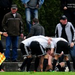 Unsere Mannschaft ließ schon in den ersten 10 Minuten zwei dicke Chancen zu. Die Heimelf wollte Wiedergutmachung für die krasse 0:11 Hinspielpleite nehmen. Einmal scheiterte ein Akteur der FSG Schmelz-Limbach an der Latte, wenig später parierte Kai Berrang in einem Eins gegen Eins Duell. Mit der ersten Chance konnte unsere Spvgg in Führung gehen. Nach einem Freistoß von der rechten Seite durch Julian Fernsner nickte Nils Welter das Leder zum 1:0 aus Gästesicht ein. Die Führung verlieh unserer Mannschaft auf dem tiefen, aber gut zu spielenden Rasen nur wenig Sicherheit. Die FSG kam aber überraschend zum Ausgleich, als Berrang mit dem Ball aus dem Sechzehner rutschte und Matthias Bambach zum 1:1 einschieben konnte. Mit diesem Spielstand ging es in die Pause. Trainer Woll war nicht zufrieden mit dem Einsatz seiner Mannschaft und ließ deutliche Worte los. Diese schienen zu fruchten, denn nach dem Wiederanpfiff gelang Yannick Schneider erneut die Führung für Quierschied – 2:1. In der 55. Minute dann ein Schockmoment. Dennis Dillenburger knallte mit seinem Gegenspieler in der Luft zusammen und blieb blutend auf dem Platz liegen. Ein Krankenwagen traf ein, wenig später ein Rettungshubschrauber. Dille war ansprechbar, aber benommen. Das Spiel wurde für 30 Minuten unterbrochen. Die Spvgg wollte das Spiel für Dille weiterspielen, war aber danach neben der Spur. Man leistete sich viele unnötige Abspielfehler sodass die FSG locker leicht erneut durch Bambach zum 2:2 Ausgleich kam. Das Spiel war nun offen, beide Teams spielten auf Sieg. Leider mussten zwei Spieler unserer Mannschaft danach das Feld verlassen. Erst bekam Manuel Allard gelb-rot, danach schickte Schiedsrichter Frenzel auch Philipp Klein zum Duschen. 9 gegen 11, unsere Manschaft musste jetzt an ihre Grenzen gehen, da noch 15 Minuten zu spielen waren. Doch unsere Elf kämpfte wie die Stiere und kam durch ein Wahnsinns-Freistoßtor von Julian Fernsner aus 25 Metern in den linken Winkel tatsächlich zur erneuten Führung. 3:2 für Quierschied, das Spiel bot Action ohne Ende. Auf der Gegenseite verhinderten Mike Brückerhoff und Berrang mit gemeinsamer Hilfe bei einer Großchance stark den erneuten Ausgleich. Und dann kam der Auftritt von Schneider, der kurz vor Schluss alleine auf das Tor zusteuerte und das 4:2 markierte. Hammerhart! Mit 9 Mann schoss unsere Wambe zwei Tore und gewann mit 4:2. Die Freude hielt sich aufgrund der Verletzung von Dille in Grenzen, doch nachdem am Abend Entwarnung herrschte, dürfen unsere Jungs nun feiern und unglaublich stolz auf diesen Einsatz sein. Wenn man es sich auch einmal mehr unnötig schwer machte…