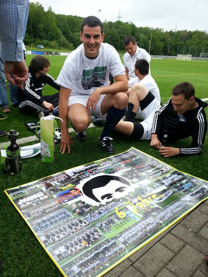 Der letzte Heimspieltag begann für unsere 1.Mannschaft unerfreulich. Unerfreulich darum, weil unsere Mannschaft gerne noch einmal vor heimischem Publikum angetreten wäre und auch organisatorisch vom Verein und der Mannschaft einiges im Vorfeld geplant wurde. Doch der SV Klarenthal sagte die Partie am Sonntagmittag kurzfristig ab. Das Spiel wird damit für unsere Elf gewertet. Neben den entgangenen Einnahmen an Eintrittsgeldern und unnötigen Einkäufen von Würsten und Weck durch unsere Jugendabteilung war es einfach nur ärgerlich, weil der geplante Ablauf somit massiv gestört wurde. Zumal es von Klarenthaler Seite hieß, dass sich die Absage seit Freitag abzeichnete. Über das Verhalten des SV Klarenthal kann man nur noch den Kopf schütteln. Nichtdestotrotz machte unsere Spvgg das Beste draus. Trainer Markus Woll wurde nach Spielende der 2. Mannschaft schon mal vor dem heimischen Publikum verabschiedet. Lutz Maurer, in den vielen Jahren erster Ansprechpartner für Coach Woll ließ es sich nicht entgehen, ein paar Worte des Dankes an Markus zu richten. Auch unser Torwart Kai Berrang wurde verabschiedet, er rückt ins zweite Glied und wird neben seinem Vorstandsamt künftig das Torwarttraining übernehmen. Ebenfalls wurde Thomas Seitner verabschiedet, der sich künftig nur noch um die AH kümmern wird. Danach verweilten Trainer, Spieler, Vorstand und Fans noch einige Stunden auf dem Sportplatz und feierten trotzdem den letzten Heimspieltag der Saison, auch ohne Spiel der 1. Mannschaft. Am Mittwoch steht schließlich noch was großes an und darauf ist die Vorfreude riesengroß.