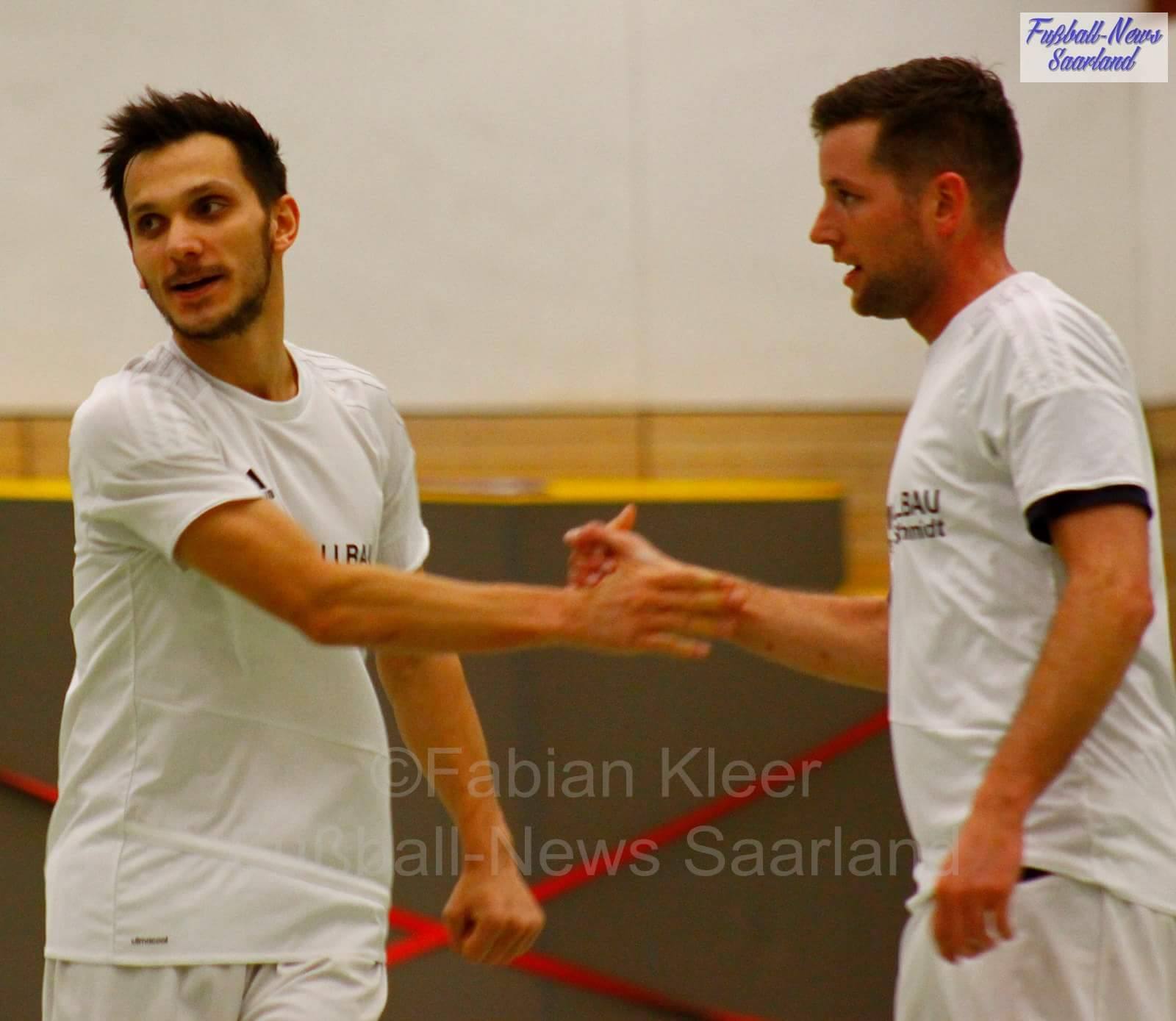 Am Freitagabend startete das Hallenturnier unseres Nachbarn DJK Bildstock. Gespielt wurde in der Helenenhalle Friedrichsthal. Unsere Sportvereinigung startete in diesem Jahr wieder mit zwei Mannschaften. Unsere 2. Mannschaft, die im letzten Jahr das Turnier sensationell gewann, trat als Titelverteidiger an. Schon am Freitag gingen unsere Jungs der „Zwädd“ in einer schweren Vorrundengruppe an den Start, schieden dort aber aus. Dabei unterlag man Saar 05 2 (3:7) und Wiesbach (1:3) und gewann gegen Friedrichsthal (2:1) und Hühnerfeld (6:0). Unsere 1. Mannschaft griff ab Samstag ins Turnier-Geschehen ein. Sie bestritt ab 13:30 Uhr ihre Vorrunde und wollte versuchen möglichst weit zu kommen. Das gelang auch, unsere Spvgg wurde Zweiter. Die Vorrunde wurde als Zweiter hinter der SG Lebach beendet. Gegen Lebach unterlagen die Wambe 1:2, gegen Hellas (4:2), Schnappach (6:4) und Rastpfuhl 2 (11:1) gab es Siege. In der Zwischenrunde am Sonntag wurden wir Erster nach Siegen gegen Auersmacher (4:2), Saar 05 2 (4:2) und Remis gegen DJK Bildstock (2:2). Im Halbfinale dann ein großer Auftritt gegen Lebach und die Revanche für die Niederlage in der Vorrunde. Mit 4:2 gelang unserem Team der Einzug ins Endspiel. In diesem setzten sich die starken Wiesbacher aus der Oberliga mit 3:1 durch. Unsere Spvgg beendete die Hallenrunde mit starken 85,25 Masterspunkten. Ob diese aber für die Quali zum Finale in die Saarlandhalle reichen werden, ist fraglich. Während alle Mannschaften noch Turniere spielen, müssen wir zuschauen und hoffen das die Konkurrenten patzen. Trotzdem gratulieren wir unseren Hallekickern schon jetzt für eine überragende Hallenrunde mit einigen großen Überraschungen.