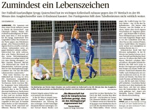 26. Spieltag Karlsberg Liga Saarland, So. 02.04.2017 15 Uhr Spvgg Quierschied – SV Mettlach 1:1 (0:0)