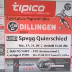 29. Spieltag Karlsberg Liga Saarland Montag 17.04.2017 15:00 Uhr VFB Dillingen – Spvgg Quierschied 5:3 (2:3)