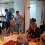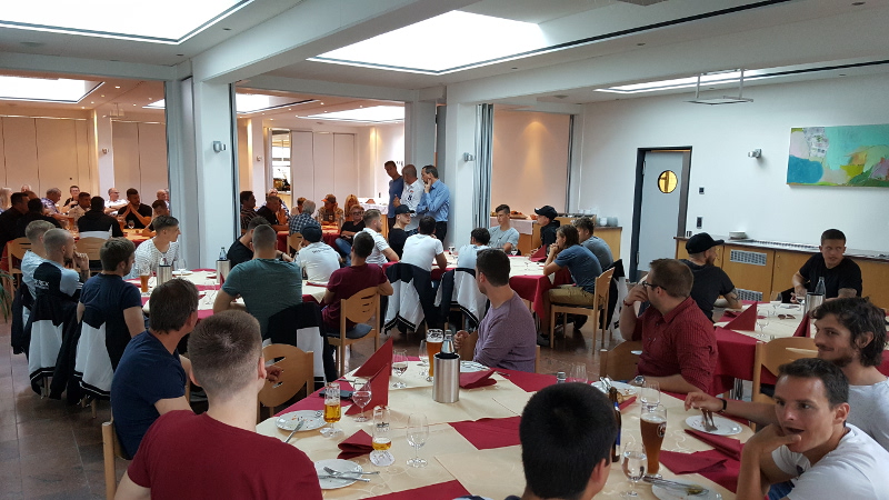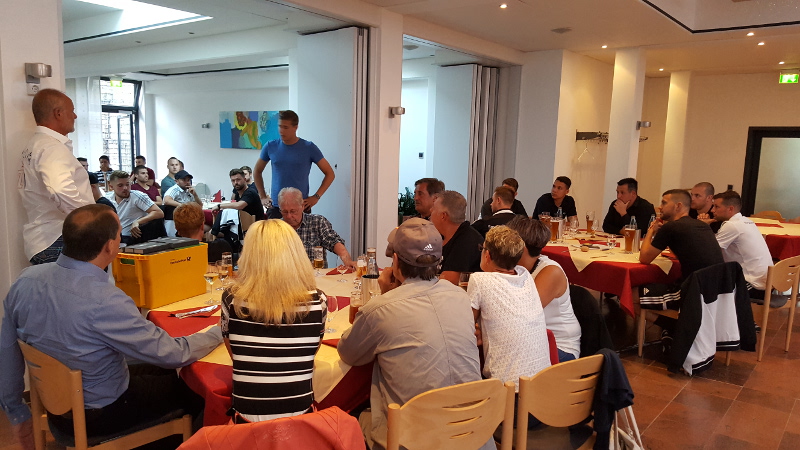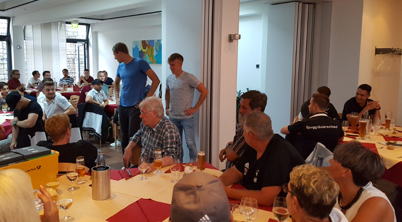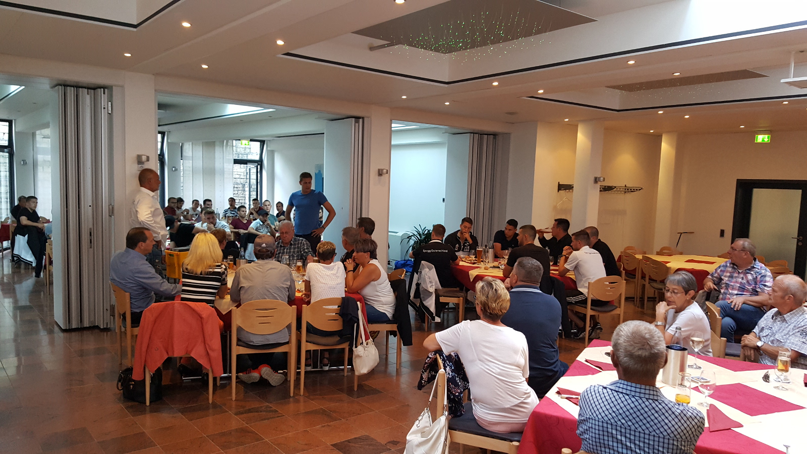 Am Mittwoch, dem 28. Juni, trafen sich Vorstandsvertreter, Spieler und Fans an der Sportschule in Saarbrücken zum Einschwören auf die neue Saison. Während einer gemeinsamen Trainingseinheit von 1. und 2. Mannschaft traf der Bus mit den Vorstandsvertretern und Fans auf dem Gelände der Sportschule ein. Nach dem Training der Aktiven fanden sich alle im Nebenraum der Sportlermensa zum gemeinsamen Abendessen ein. Nach eröffnenden Worten der Vereinsvorsitzenden Patric Schmidt und Klaus Meiser stellte Erstmannschafts-Trainer Pascal Bauer den Anwesenden die Neuzugänge vor. Mit einem gemütlichen Umtrunk klang das Einschwören auf die neue Runde in der Saarlandliga aus.