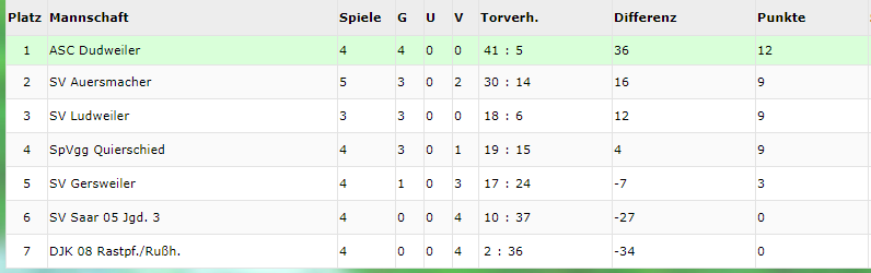 F1-Junioren: SpVgg. Quierschied – SV Röchling Völklingen 6:3, DJK Ensheim 2 – SpVgg. Quierschied 0:9