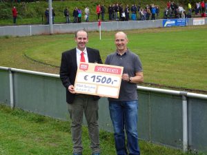 Der Leiter des örtlichen Rewe-Marktes, Andreas Straub (links im Bild), hat unserer Jugendabteilung als Dank für das Engagement im Rahmend des Rewe-Sommerfestes 2017 einen Spendenscheck in Höhe von 1.500 Euro überreicht. Mike Schumacher nahm den Scheck in Vertretung des Jugendleiters entgegen. Im Namen aller Kinder und Jugendlichen bedankt sich der Vorstand ganz herzlich bei Herrn Straub für diese großzügige Spende.
