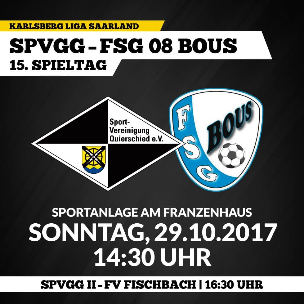 15. Spieltag Karlsberg Liga Saarland So. 29.10.2017 14:30 Uhr Sportvereinigung Quierschied – FSG 08 Bous