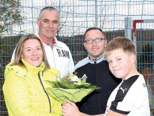 Von links nach rechts: Frau Franz, Herr Franz, Trainer Mario Schäfer, Lars Bender.