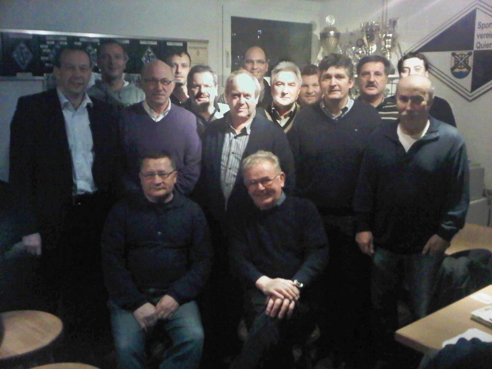 Die gute Stimmung, die bei der Spvgg. Quierschied sowohl im Aktiven Lager als auch in der Jugendabteilung vorherrscht, machte sich auch am Donnerstag, den 15. Dezember 2011 in der Mitgliederversammlung bemerkbar. Der 1. Vorsitzende Lutz Maurer und mit ihm der amtierende Vorstand wurden ohne Gegenstimme für zwei Jahre wiedergewählt. Veränderungen gab es nur in der Abteilung “Alte Herren”, in der Alex Wolfanger Peter Müller als Leiter ablöste. Außerdem hat das Gremium mit Sighard Groß, Herbert Maurer und Andreas Jung drei Beisitzer dazu gewonnen. Einstimmig wurden auch die neben der Vorstandswahl wichtigsten Tagesordnungs-Punkte. Die Anpassung der Mitgliedsbeiträge wurde von der Versammlung ebenso anstandslos befürwortet wie die Empfehlung des Vorstandes, Klaus Meiser zum Ehrenmitglied zu ernennen.