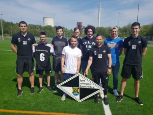 2. Mannschaft Neuzugänge 18/19: Trainer Markus Woll, Tom Kreutzer, Jonas Bastuck, Fabian Wiest, Thuliv Leo, Jonas Elgas und Yannik Eiler. Vorne stehend: Leonardo und Aldo Testa.
