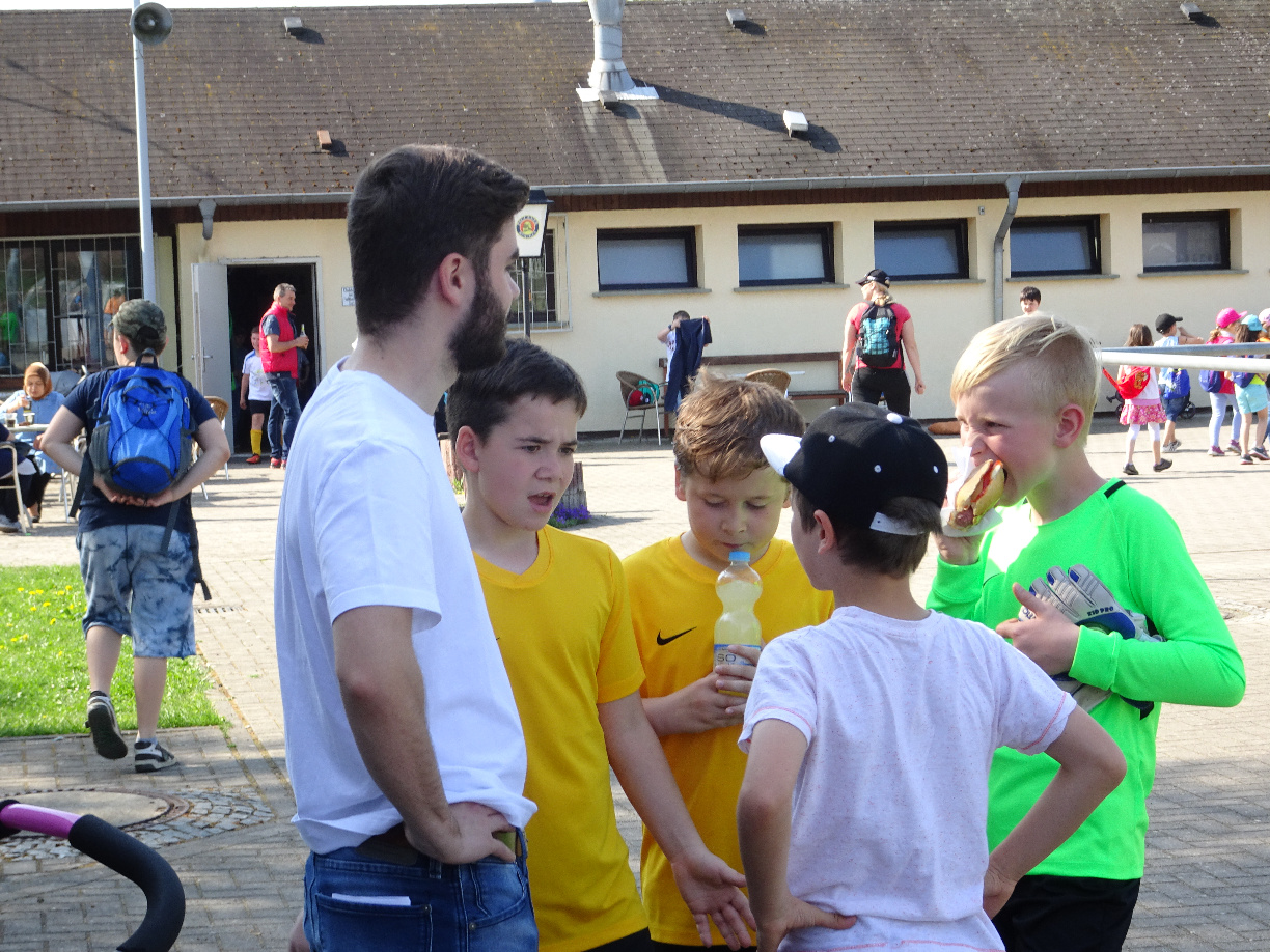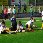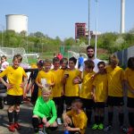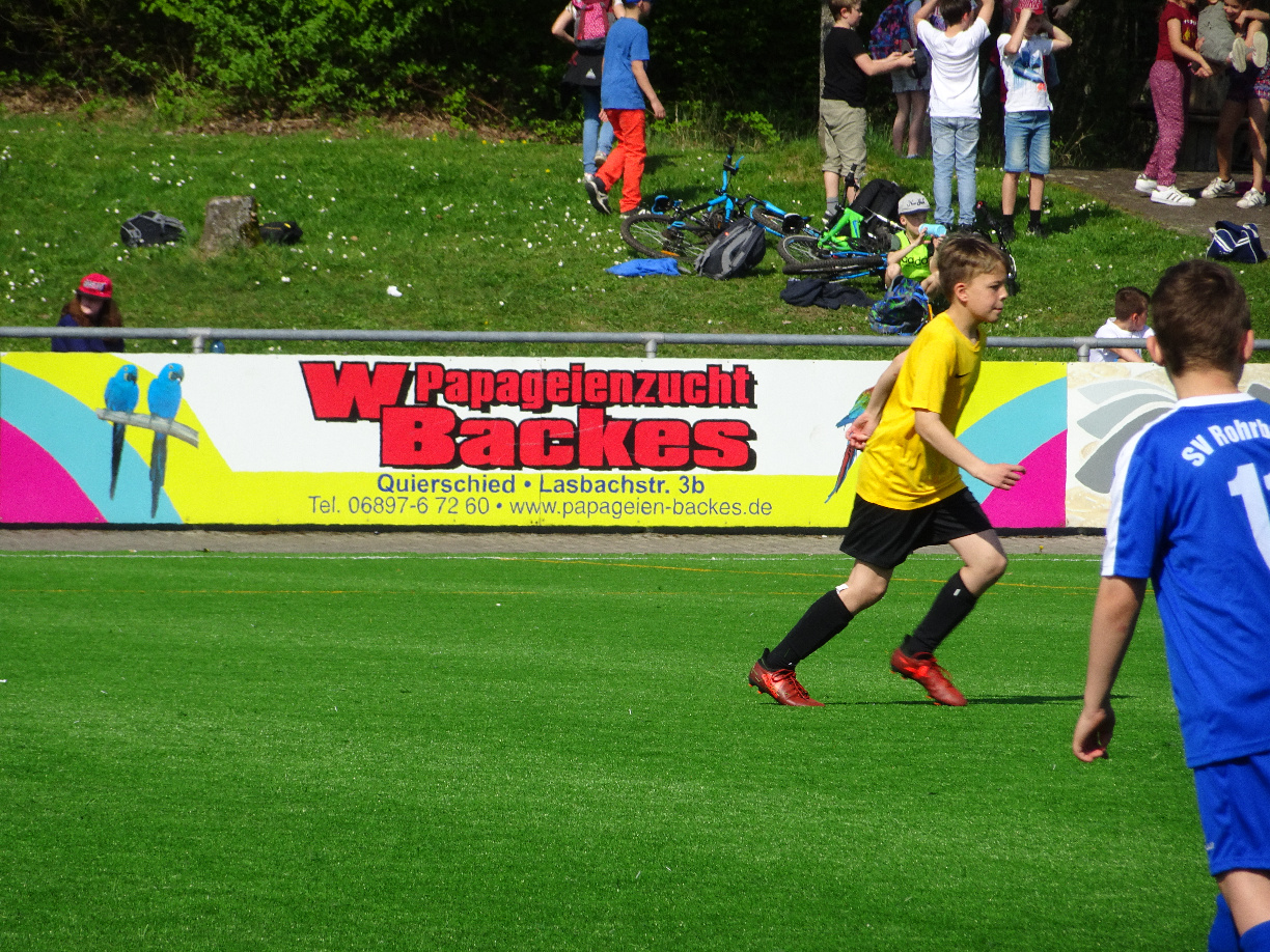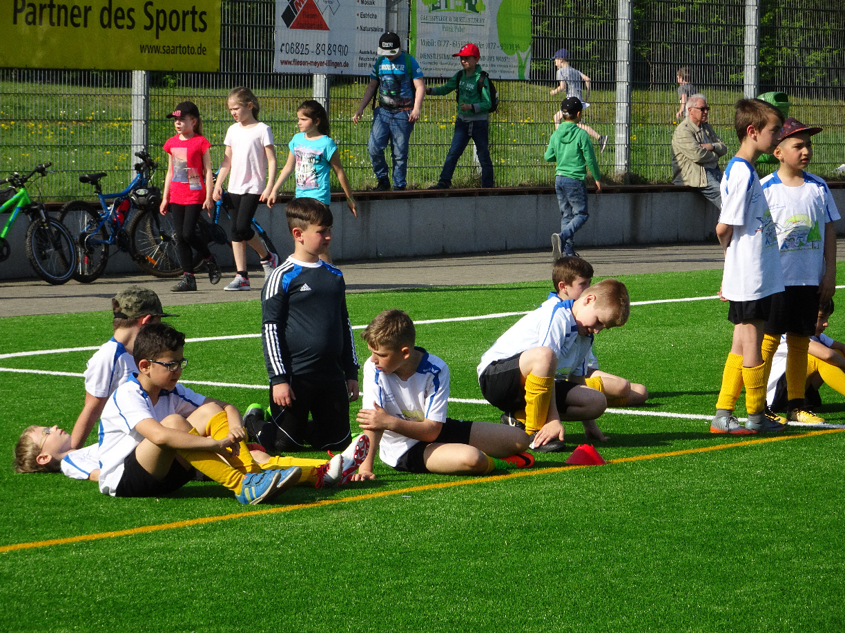 Mit leichter Verspätung ging es dann gegen 9:15 Uhr los. Dabei traf die Grundschule Lasbach auf die Mannschaft der Grundschule Fischbach-Göttelborn, die für dieses Turnier zwei Teams ins Rennen geschickt hatte. Parallel wurde auf Feld 2 das Spiel zwischen der Grundschule Herrensohr und der Grundschule Pestalozzi St. Ingbert ausgetragen. Stellvertretend für die Spvgg. Quierschied, fanden sich in vielen Mannschaften Spieler aus jenem Verein wieder. Trainiert man unter der Woche noch zusammen, galt es nun den Mannschaftskollegen alles abzuverlangen und seinem Team zum Sieg zu verhelfen. Während auf den Spielfeldern zwei heiß umkämpfte Partien zu bewundern waren, war auch außerhalb für das Wohl der Gäste durch den Verkauf von Kuchen und den allseits bekannten Stadionwürsten der Spvgg. Quierschied gesorgt. Und auch das Wetter, das an diesem Tag bis zu 28 Grad versprach, war bereits in den frühen Morgenstunden ideale Voraussetzung für ein unterhaltsames Turnier. Und das sahen die Zuschauer auch. Unter den breit gefächerten Kadern jeder Mannschaft fanden sich sowohl Hobbykicker als auch einige Hochkaräter wieder, die regelmäßig im Dress des SV Elversberg oder des 1.FC Saarbrücken auflaufen. Während sich die ersten Partien der Gruppe A zu Ende neigten, bereiteten sich die Kontrahenten der Gruppe B auf ihre ersten Spiele vor. Im Eröffnungsspiel konnte sich die Grundschule Lasbach über ihren ersten Dreier freuen, indem sie mit einem 3:0 über die Fischbach-Göttelborner ein erstes Statement setzten. Daraufhin hatten sich die Jungs erstmal eine Pause verdient, die an diesem Tag auch nicht zu kurz kommen sollte, war es doch bereits um 10 Uhr knapp 20 Grad. Ebenfalls durfte auch die Sonnencreme nicht fehlen, da der Platz mit Sonne geflutet wurde und sich auf diesem ein mittlerweile perfektes Klima zum Fußballspielen entwickelt hatte. Im nächsten Spiel mussten die Spieler des Veranstalters der Grundschule Lasbach dann gegen einen im Vorfeld schon schwierig zu spielen geglaubten Gegner aus Herrensohr ran. Doch auch die Herrensohrer waren gewarnt ob des 3:0 Ausrufezeichen im ersten Spiel. Man sah von Beginn an zwei erprobte Teams, die auf einen Großteil von eingespielten Vereinsspielern setzten. Das bessere Ende hatte am Schluss Herrensohr, die sich mit einem 0:2 Erfolg über die Grundschule Lasbach an die Tabellenspitze schossen. Im letzten Spiel musste für die Quierschieder Schule nun ein Sieg her, um noch eine Chance auf den Einzug in die Zwischenrunde zu haben. Gleichzeitig musste aber auch der Spitzenreiter aus Herrensohr ihr Spiel verlieren. Doch dazu kam es leider nicht. Auch das dritte Spiel ging an die an diesem Tag gut aufspielende Herrensohrer Mannschaft. Daher nutzte auch das 1:1, das die Quierschieder gegen die Grundschule St. Ingbert einfahren konnte nichts. Am Ende durfte sich dann die Mannschaft aus Herrensohr als Erster der Gruppe A in den Lostopf für die Zwischenrunde am 16. Mai einreihen. In der Gruppe B konnte sich St. Ingbert als glücklich schätzen, ebenfalls ein Ticket erspielt zu haben. Insgesamt war es ein tolles Turnier, das bei vielen Anklang gefunden hatte und jeder voll auf seine Kosten kam.