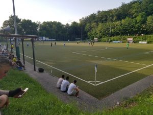 Der Anpfiff um 18:30 Uhr verzögerte sich um ein paar Minuten, da die Gastgeber ihren gesamten Kader verabschiedeten. Aus finanziellen Gründen muss der im zehnten Saarlandligajahr spielende SV 09 Bübingen für die kommende Saison mit einer ganz jungen und umformatierten Mannschaft an den Start gehen. Für das Spiel standen Trainer Pascal Bauer gerade einmal noch 11 Mann zur Verfügung während die Heimelf noch einmal beinahe den gesamten Kader zur Verfügung hatte. Somit rechnete man mit einer sehr schwierigen Aufgabe zum Abschluss. Aber die Wambe zeigten von Beginn an einen engagierten Auftritt und so sahen die knapp 100 Zuschauer eine flotte Partie und keineswegs Sommerfußball. Die erste gute Chance hatte Bübingens Marcel Schorr, er scheiterte mit einem Distanzschuss am aufmerksamen Benny Schmitt im Tor. Auf Quierschieder Seite vergab Julian Fersner die erste große Quierschieder Gelegenheit, als er über links kommend knapp rechts am Pfosten vorbeischoss. Im Laufe der ersten Halbzeit wurde Bübingen stärker, ging aber dann letztlich glücklich mit 1:0 in Führung. Ein Schuss von Patrick Jantzen wurde abgefälscht, sodass Schmitt keine Chance hatte den Ball zu erreichen. Danach drängte Bübingen auf den zweiten Treffer. Dieser fiel auch kurz vor der Pause, fand aber wegen Abseits keine Anerkennung. 1:0 für Bübingen lautete der Halbzeitstand.
