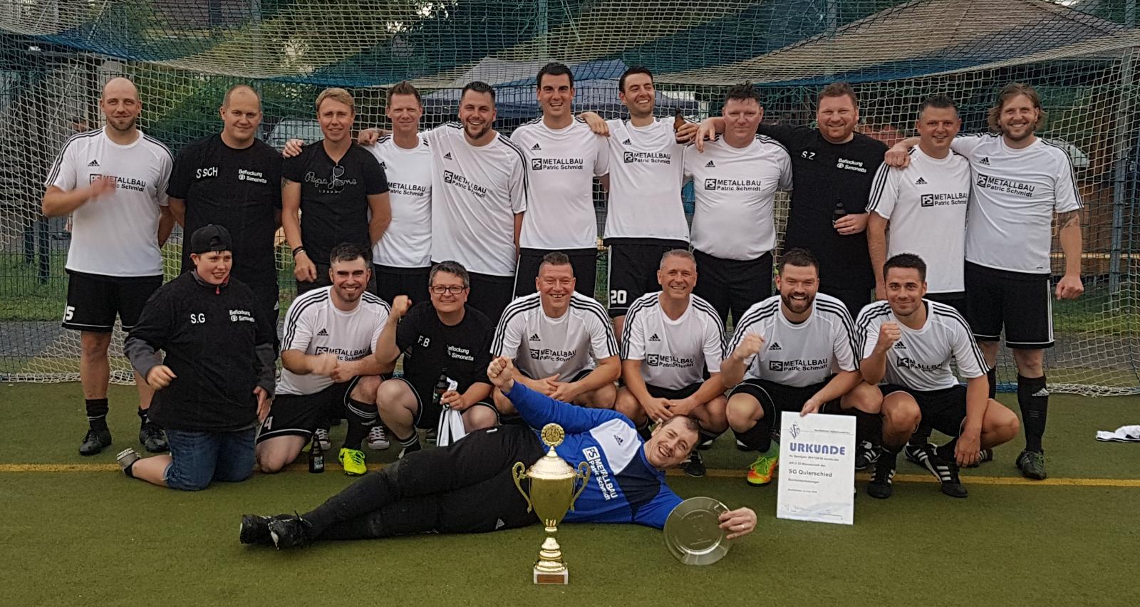 Was für eine Überraschung! Unsere neu gegründete AH-A (Ü-32) gewann gleich in ihrem ersten Jahr am vergangenen Samstag den Saarlandpokal und krönte damit ihre starke Pokalsaison. In einem spannenden Finale in Brotdorf bezwang unsere Spielgemeinschaft mit Eintracht Altenwald den favorisierten SC Großrosseln mit 2:1. Die Tore erzielten Timon Sand und Hendrik Grätz. Herzlichen Glückwunsch zu diesem tollen Erfolg an die Truppe von Torwart und Teammanger Kai Berrang, der sich mit den Aktiven auf Abschlussfahrt befand und von AH-Leiter Thomas Seitner exzellent vertreten wurde.