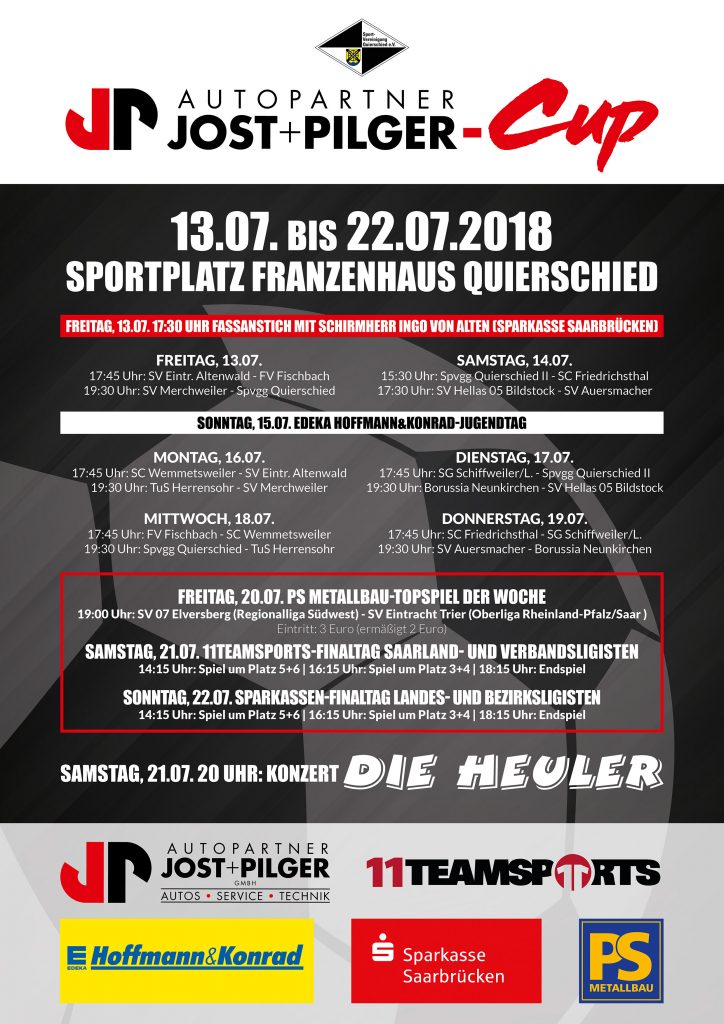 Um 17:30 Uhr erfolgt mit dem Fassanstich der „Startschuss“ für 10 Tage Fußball pur! Dieser wird von Schirmherr Ingo von Alten von der Sparkasse Saarbrücken (Leiter FinanzCenter Quierschied) sowie Bernd Jost, Geschäftsführer des Hauptsponsors Autopartner JOST + PILGER GmbH vorgenommen. Zwischen dem 13. und 22. Juli werden zwei Turniere ausgespielt: Eines mit Bezirks- und Landesligisten und eines mit Verbands- und Saarlandligisten. Kurz vor dem Rundenstart der saarländischen Amateurklassen können sich somit alle Fußballbegeisterten einen aussagekräftigen Eindruck der Mannschaften einholen.