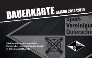 Treue Spvgg-Fans sparen Geld! Ab sofort sind wieder unsere Dauerkarten für die Saison 2018/2019 erhältlich. Diese Karte hat für alle 17 Heimspiele der 1. Mannschaft in der Saarlandliga und der 2. Mannschaft in der Bezirksliga Gültigkeit. Pokalspiele sind ausgenommen. Käuflich zu erwerben sind sie bei Heimspielen und jederzeit bei Vorstandsmitglied Toni Schönenberger. Alternativ per Email an info@spvgg-quierschied.de oder per Nachricht über unsere offizielle Facebook-Seite. In der kommenden Saison werden die Preise in den saarländischen Amateurklassen erhöht. So auch in der Saarlandliga. Erwachsene (Männer und Frauen) zahlen 5 €, ermäßigt 4 €.