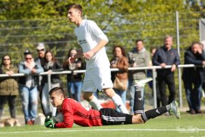 Torwart Tobias Knapp – hier noch im Tor der Spvgg (Saison 16/17) hütet am Samstag den Rastpfuhler Kasten gegen unser Team. Foto: G. Müller