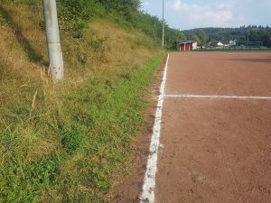 Die etwa 30 mitgereisten Quierschieder Zuschauer mussten zunächst einmal einen Platz finden, von wo sie das Spiel anschauen können. Denn ca. einen halben Meter neben der Seitenlinie begannen direkt voller Gras gewachsenen Hügel. Irgendwo im grünen wurde dann aber ein Plätzchen für die Spvgg-Fans gefunden, die eine rundum veränderte Startaufstellung sahen. Trainer Pascal Bauer schonte zahlreiche Spieler und vertraute auf die Spieler die zuletzt weniger zum Liga-Einsatz kamen. Außerdem durften mit Aldo Testa und Hendrik Grätz zwei Akteure unserer Bezirksliga-Elf ran.