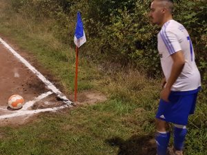 Auch die von Manuel Haag trainierte Heimelf hatte eine große Chance. Aus spitzem Winkel kam Mirza Idrizovic frei zum Schuss, doch sein Abschluss ging haarscharf am linken Winkel vorbei. Die nächste Wambe-Chance gab es in der 38. Minute. Mike Brückerhoff führte einen Freistoß schnell aus und brachte Julian Fernsner mit einem langen Ball in eine sehr gute Schussposition. Doch Julians Schuss wurde von Sebastian Barth stark pariert. Erneut folgte auf die Quierschieder Gelegenheit auch eine auf der Gegenseite. Nach einem Fehlpass lief Idrizovic ganz alleine auf das von Fabian Gessner gehütete Tor zu, schoss aber rechts am Pfosten vorbei. Quierschied war tonangebend, hatte das Spiel im Griff, aber bei den Großchancen stand es 2:2. Da tat es der Elf von Pascal Bauer gut, dass man in der 44. Minute in Führung gehen konnte. Nach einem Eckball von Arphan Singh landete das Spielgerät am langen Posten. Dort stand Alden Hodzic, der gekonnt auf Daniel Schönfeld in den Rückraum ablegte – und dessen Schuss zum 1:0 für Quierschied im Netz zappelte.