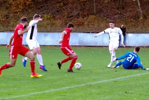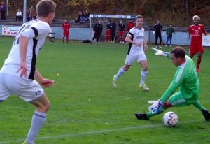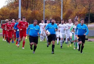 Nach einer zähen Abtastphase zu Beginn hatte Rastpfuhl in der 14. Minute die erste Chance zu verzeichnen, Ram Jashiri prüfte Spvgg.-Keeper Benny Schmitt mit einem Flugkopball. In der 21. Minute nahm Schmitt den Ball laut Schiri-Assistent außerhalb des Strafraums mit den Händen auf, der Torhüter sah gelb und es gab Freistoß für den FCR, den Marcel Noll haarscharf vorbei schoss. Quierschied kam in den ersten 25 Minuten gar nicht in die Zweikämpfe, Einsatz und die Körpersprache der letzten beiden Spiele wurden vermisst – was für Unmut bei den Wambefans unter den ca. 250 Zuschauern sorgte. In der 26. Minute hatte Quierschied die erste Chance. Julian Fernsner spielte zu Mirco Zavaglia, der den Ball nach innen passte, wo Daniel Schönfeld das Spielgerät per Grätsche nur wenige Zentimeter neben das Tor setzte. Nun gab es zahlreiche Chancen hüben wie drüben. In der 30. Minute erneut die Chance für Quierschied. Zavaglia setzte sich auf rechts durch und passte aus spitzem Winkel zu Julian Fernsner. Der zögerte, kam aber zum Abschluss. Der Ex-Quierschieder Tobias Knapp zwischen den Rastpfuhler Pfosten parierte den Schuss aber stark. Auch auf der anderen Seite wurde es gefährlich: In der 31. Minute traf Jashiri aus gut 25 Metern die Latte. Kurz darauf hatte unser Captain Domme Engel ebenfalls einen Schuss an den Querbalken zu verzeichnen. In der 33. Minute ging Rastpfuhl in Führung. Stefan Kaeding umkurvte Schmitt, legte quer zu Calogero Raia und der netzte ein zum 0:1 aus Sicht der Sportvereinigung.