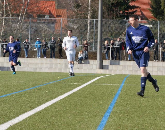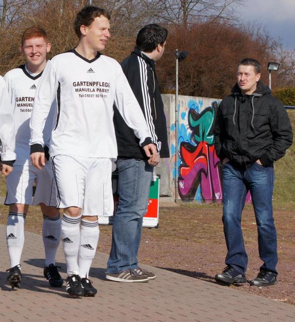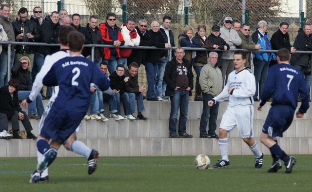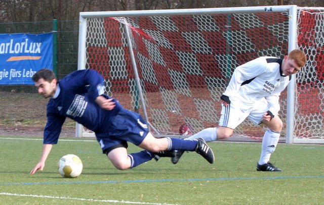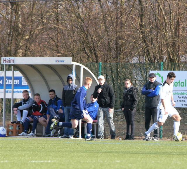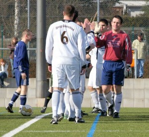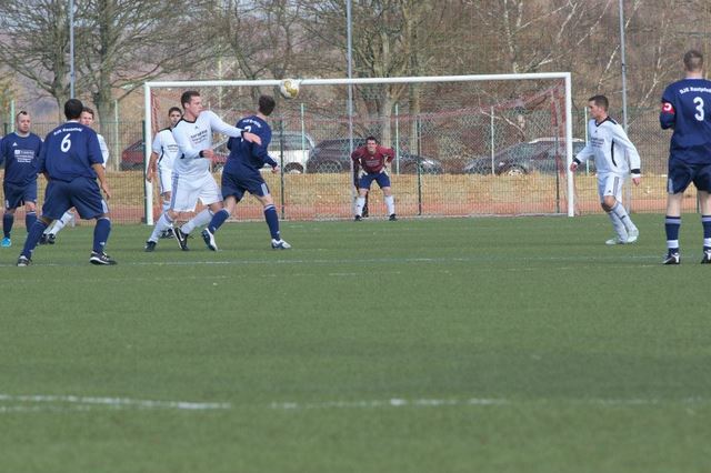 Im ersten Pflichtspiel 2012 siegte unsere 1. Mannschaft beim Vorletzten der Bezirksliga Saarbrücken, der DJK 08 Rastpfuhl-Rußhütte, mit 5:2 (1:0). Spielertrainer Markus Woll saß krankheitsbedingt zunächst auf der Bank, für ihn übernahm Manuel Allard die Rolle des Spielmachers. Oliver Wirth feierte nach seiner schweren Fußverletzung die Rückkehr ins Team.