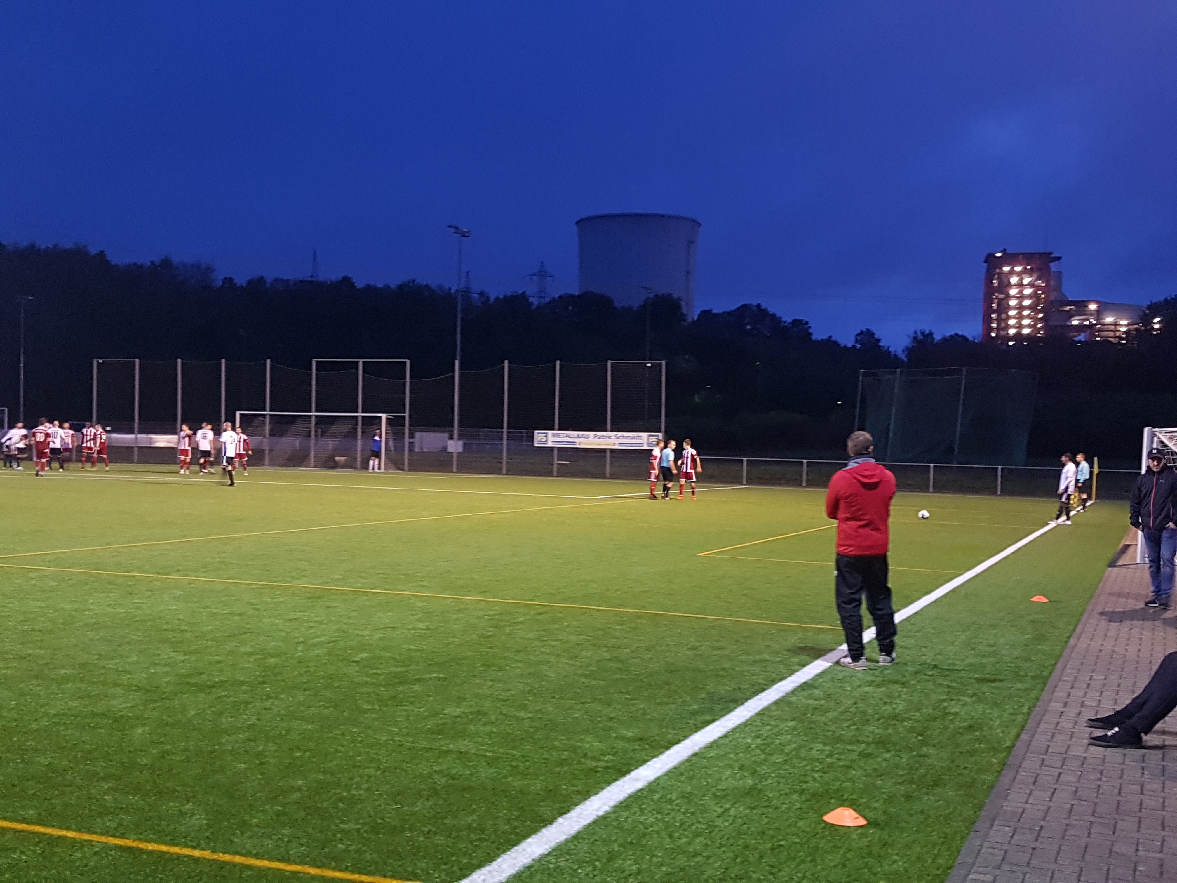 Nach dem Wiederanpfiff hatte Hasborn die Ausgleichschance, eine Freistoß-Hereingabe verfehlte den Kasten vom wieder einmal sehr sicheren Benny Schmitt am langen Pfosten nur knapp. In der 56. Minute gab es Freistoß für Quierschied. Florian Weber legte sich auf dem nassen Platz das Leder zurecht und schoss stramm auf die Kiste. Der Ball kam flach und zentral, aber fand dennoch den Weg ins Tor – 3:1 für Quierschied! Mittlerweile war die Führung verdient, denn die namenhaft besetzte Gästeelf baute immer mehr ab und musste wohl dem Aufwand der ersten Halbzeit Tribut zollen. In der 59. Minute verwickelte sich Julian Fernsner Höhe Eckfahne in ein Duell mit gleich drei Hasborner Spielern. Dabei wurde Fernsner heftig attackiert und auch mit den Armen am Oberkörper gepackt. Trotzdem erfolgte kein Pfiff des Unparteiischen. Mirco Zavaglia stieg in der Folge ebenfalls in den Kampf um den Ball ein – jedoch mit einer etwas zu harten Grätsche. „Zava“ sah die rote Karte. Doppeltes Pech also für unser Team, da die vorausgegangene Attacke gegen Fernsner nicht geahndet wurde.