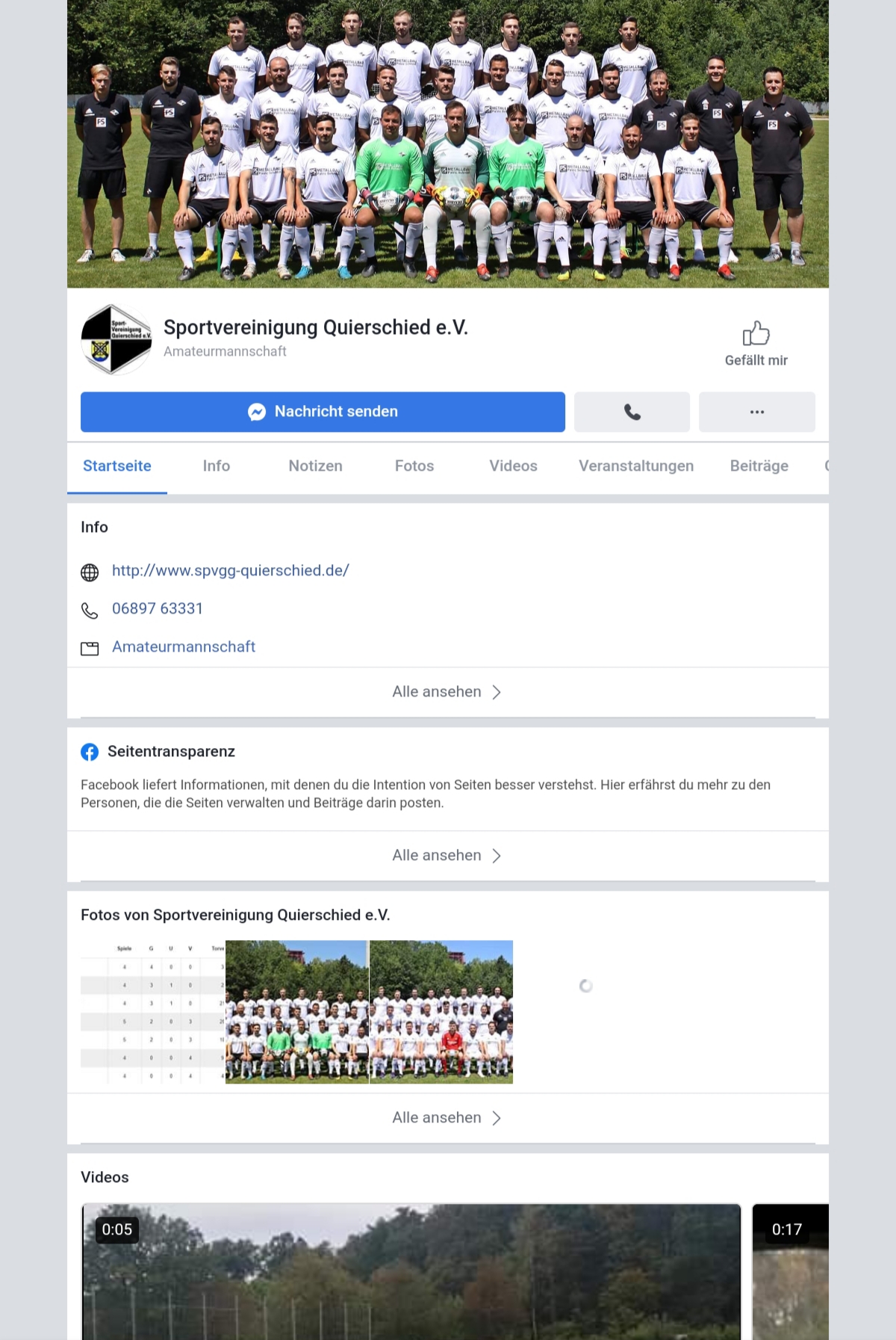 Seit vielen Jahren ist unsere Sportvereinigung auch mit einer Facebook-Seite im Netz. Auch Leser die keinen Facebook-Account besitzen, haben Zugriff auf unserer öffentliche Sportvereinigung Seite auf Facebook. Dort gibt es viele exklusive Informationen rund um unsere Spvgg. Spielstände, Bilder, Videos, Aufstellungen und vieles mehr. Klicken Sie einfach auf folgenden Link https://m.facebook.com/Spvgg.Quierschied oder oben in unserer Leiste auf „Spvgg. bei Facebook“ und schon besuchen Sie unsere Spvgg. in den sozialen Medien. Viel Spaß!