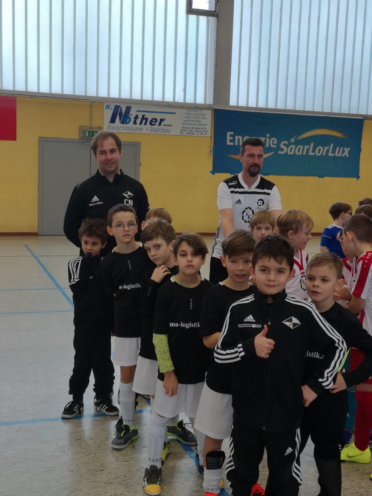 Eine Woche später am ersten Sonntag des neuen Jahres waren die Mini-Kicker beim FV Neunkirchen zum Marco-Paoloni-Cup in Wellesweiler zu Gast. In der Gruppe B hatten sie sich gegen die DJK Elversberg (4:0), TuS Wiebelskirchen (0:0), VfR Frankenholz (2:0)und JSG Saarpfalz (3:0) ohne Gegentor durchgesetzt und kein Spiel verloren.