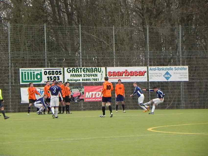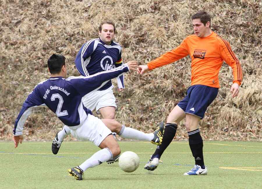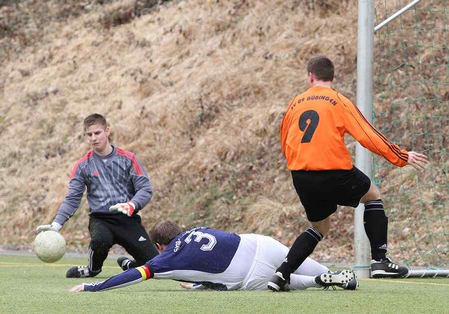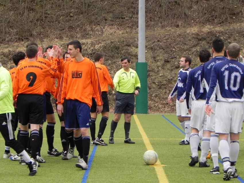 „So, wie eben trifft euer Spieler den Ball wohl nie wieder in seinem Leben“, sagte ein Bübinger Spieler nach dem Abpfiff der Partie SV Bübingen II gegen Spvgg. Quierschied III im Kabinentrakt und machte damit deutlich: Es war eine gehörige Portion Glück für unsere Elf im Spiel, die sich nach einem 0:3-Rückstand zurück kämpfte und vor dem Schlusspfiff zum 3:3 (0:1) ausglich. Gemeint hatte der Heimspieler das Traumtor von Dennis Bonenberger, dem in der 78. Minute ein Kopfball von Mauricio Treske nach einer Standardsituation vor die Füße fiel – oder besser: auf den rechten Fuß. Bonenberger zog volley ab und versenkte das Leder genau im Winkel: der 2:3-Anschlusstreffer. Zuvor war es Julian Schank, der die Aufholjagd mit einem platzierten Schuss aus 18 Metern einleitete (76.). Sebastian Zenner sorgte mit einem Freistoß aus 35 Metern für den schmeichelhaften Ausgleich, als sein wenig platzierter Schuss dem überraschten Torwart der Gastgeber erst durch die Arme und dann durch die Beine glitt. Zwischen den Quierschieder Treffern hatten Hausherren, die seit der 40. Minute wegen einer Notbremse – der dabei zugesprochene Freistoß blieb ohne Folgen – in Unterzahl spielen mussten, teilweise hochkarätige Chancen. Vor allem Pierluigi Vella und Marc Becker, die eigentlich dem Saarlandliga-Kader angehören, sorgten immer wieder für gefährliche Offensiv-Impulse. Diese vereitelte aber entweder Quierschieds Torwart Dennis Eickhoff bei seiner besten Saisonleistung oder der Fußballgott, der an diesem Sonntagnachmittag – zumindest in Bübingen – offensichtlich ein Trikot der Spvgg. Quierschied trug. Denn auch in der ersten Halbzeit, die Bübingen mit 1:0 für sich entschied, ließen die Gastgeber zahlreiche Chancen liegen.