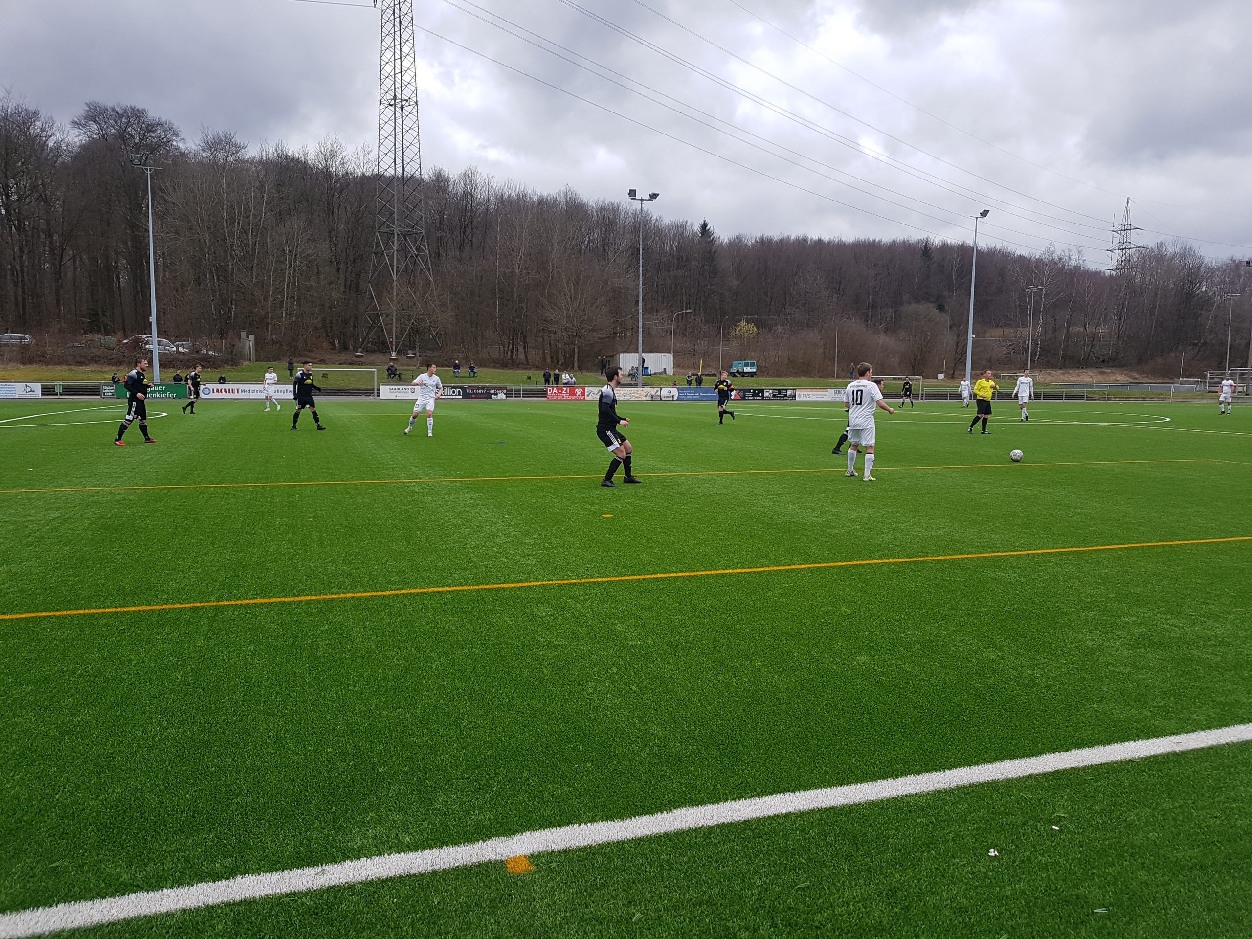 Die Partie begann direkt Fahrt aufzunehmen. In der dritten Spielminute hatte Püttlingen eine gute Gelegenheit in Führung zu gehen, die aber von Jason Schröder im Tor entschärft werden konnte. Nur zwei Minuten später setzte sich Kai Seewald gut durch, sein Abschluss landete an der Latte. Nach sechs Minuten war Manuel Niebergall allein vor dem Tor, scheiterte aber am gegnerischen Torwart. In der Folge entwickelte sich ein intensives Spiel, bei dem die „Zwädd“ immer etwas am längeren Hebel saß. Über die rechte Seite in Person von Kai Seewald kam man immer gefährlich vors Tor, die Angriffe wurden aber nicht konsequent zu Ende gespielt. Manuel Niebergall hatte nach 36 Minuten wieder eine große Chance, die wieder vergeben wurde. Nach einem Eckball der Wambe konterte der Gast schnell und ging in der 40. Minute in Führung. Dem Treffer ging aber ein klares Foul an Kai Seewald voraus, der auch verletzungsbedingt in der Halbzeit raus musste. An dieser Stelle gute Besserung Kai! Die „Zwädd“ schüttelte sich kurz und kam durch einen Elfmeter in der 45. Spielminute durch Manuel Dillenburger zum Ausgleich.