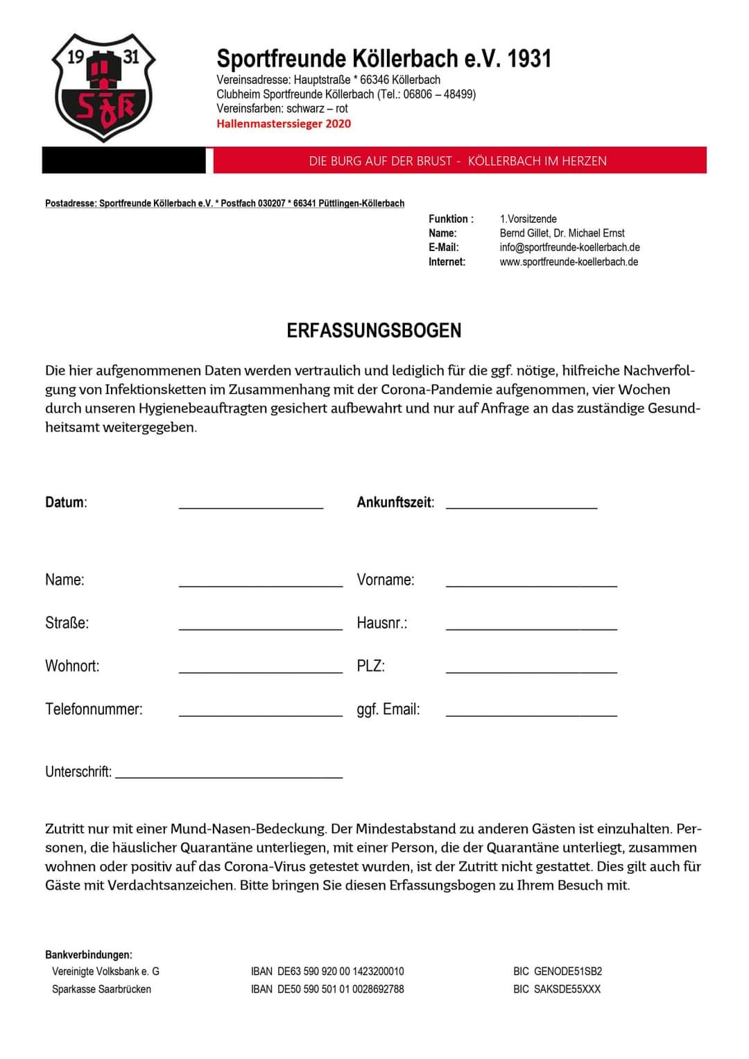 Unsere Spvgg. appelliert an alle Zuschauer auch auswärts auf die Hygiene & Abstandsregeln zu achten. Für das Spiel in Köllerbach kann sich bereits im Vorfeld ein Formular für die Kontaktnachverfolgung erstellt werden, um Schlangen am Eingang zu vermeiden: