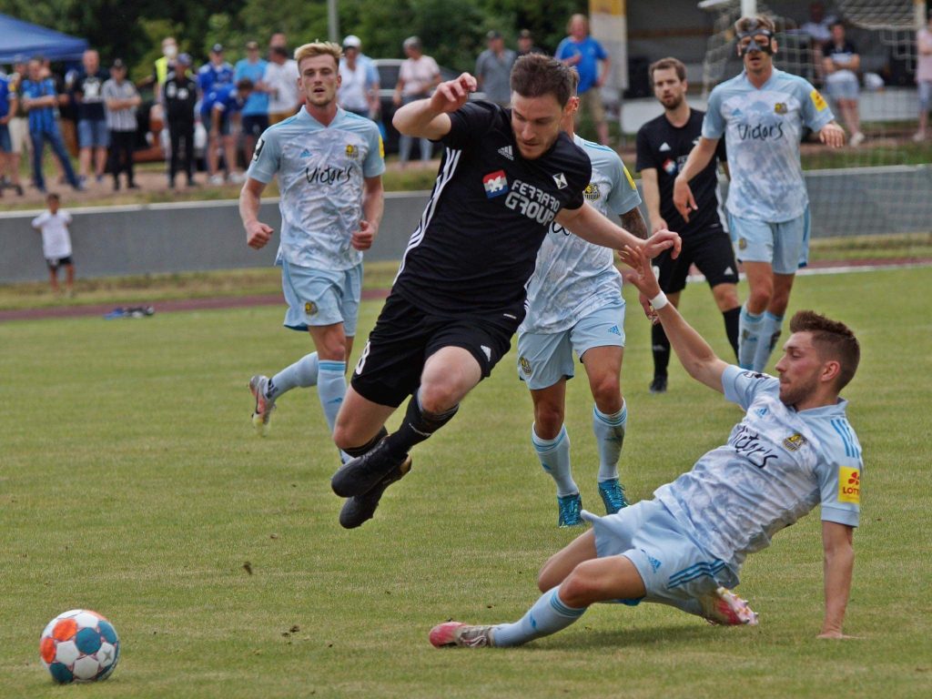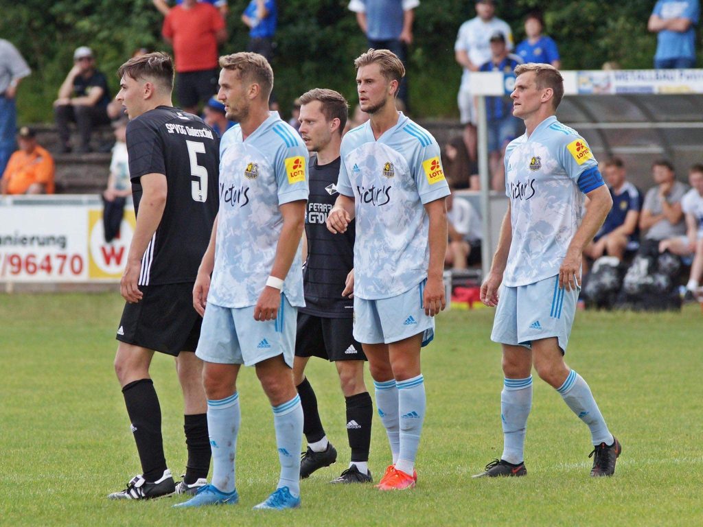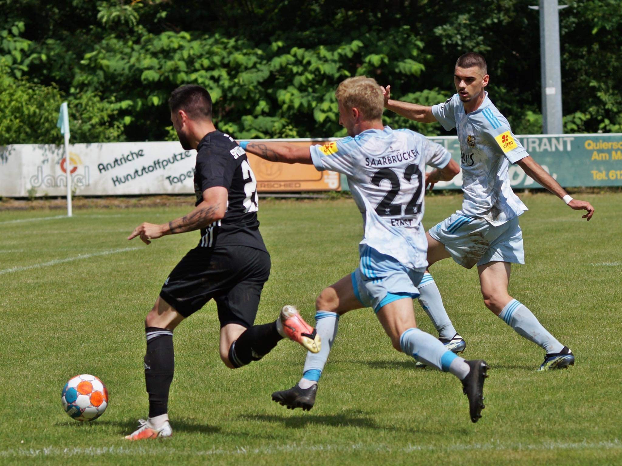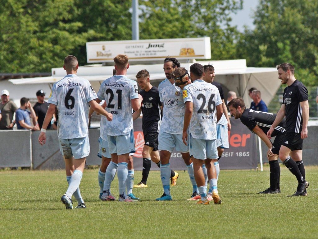 Endlich wieder Fußball vor Zuschauern am Franzenhaus! Am vergangenen Samstag war der Drittligist 1. FC Saarbrücken zu Gast in Quierschied. Dabei gewann der haushohe Favorit in einer kurzweiligen Partie gegen unsere 1. Mannschaft mit 6:0. Unsere 1. Mannschaft zeigte dennoch eine sehr engagierte Leistung und nahm einiges aus dieser Partie mit. Mit Fabio Pelagi, Alexander Sutter, Fabio Klyk und Nicolas Waltner kamen alle vier Neuzugänge zum Einsatz. Vielen Dank an Jonas Jacobs für die Bilder, zudem sind in einem Youtube Video von Saarnews Interviews mit Thomas Bettinger, Christian Meiser und Luca Lambert zu sehen. Unsere Spvgg bedankt sich an dieser Stelle beim 1. FC Saarbrücken für den Besuch sowie alle Helferinnen und Helfer für den reibungslosen Ablauf. So auch bei UGL Sicherheitstechnik und dem DRK.