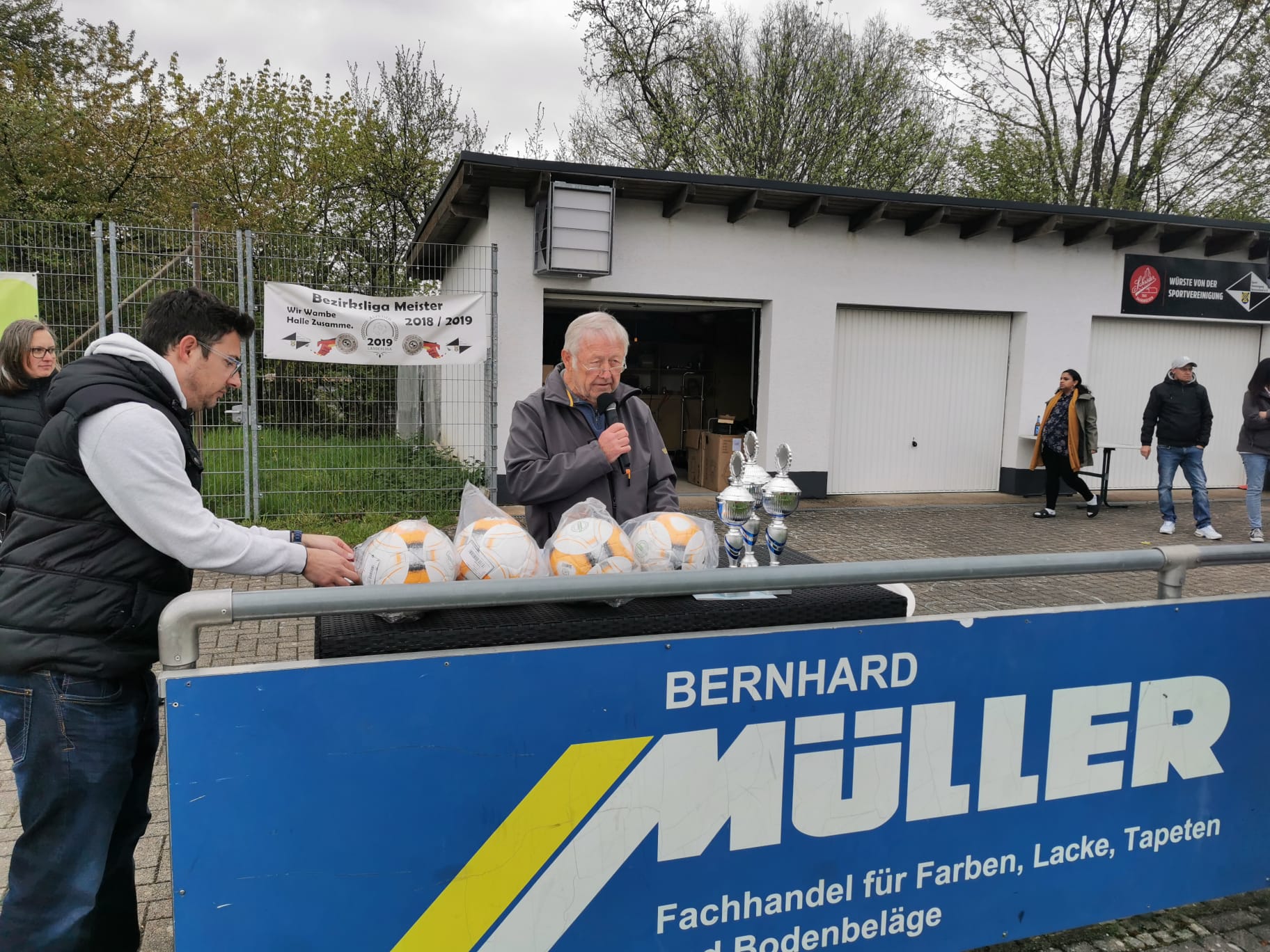 Kreisjugendleiter Dieter Kurz und SFV-Vertreter Thorsten Rau überreichten den 8 teilnehmenden Mannschaften nach dem Turnier die Urkunden und Pokale und bedankten sich bei unserer Jugendabteilung der Sportvereinigung Quierschied für die gelungene Ausrichtung des Turniers.