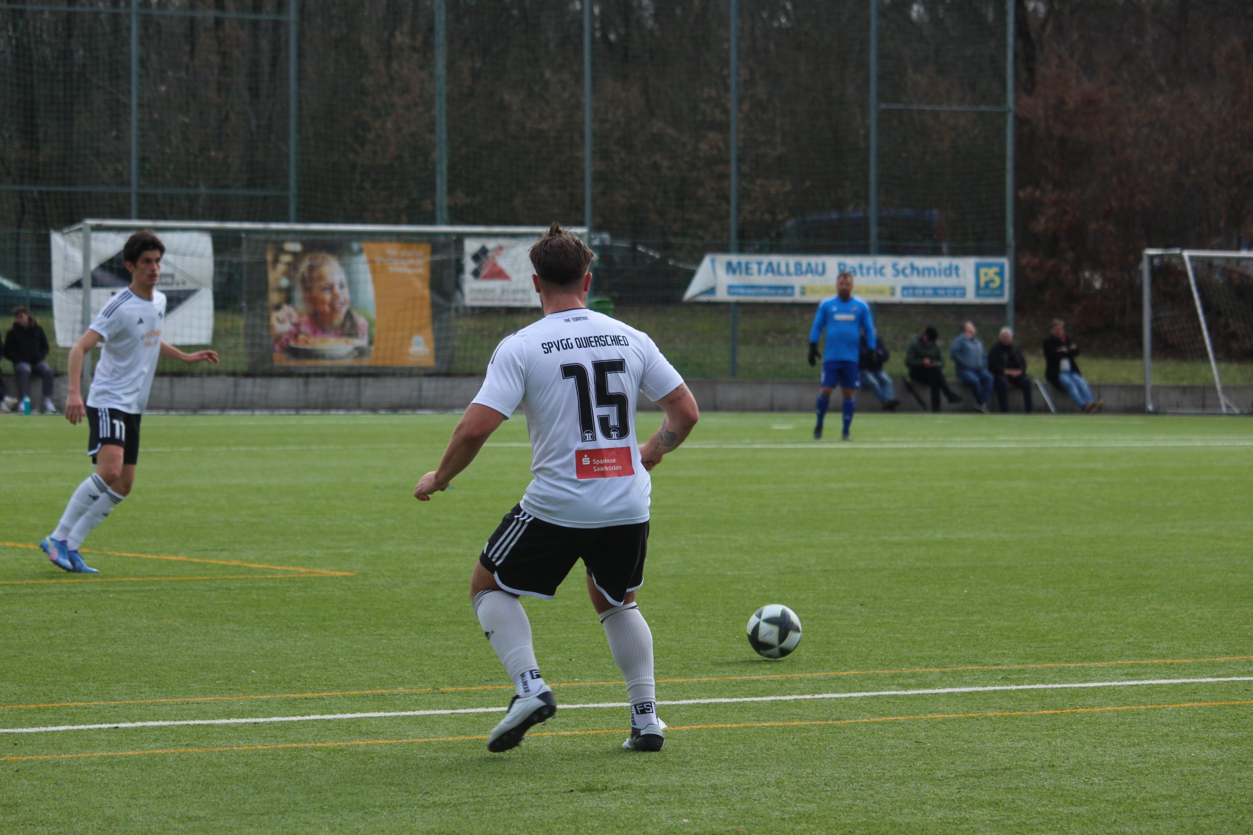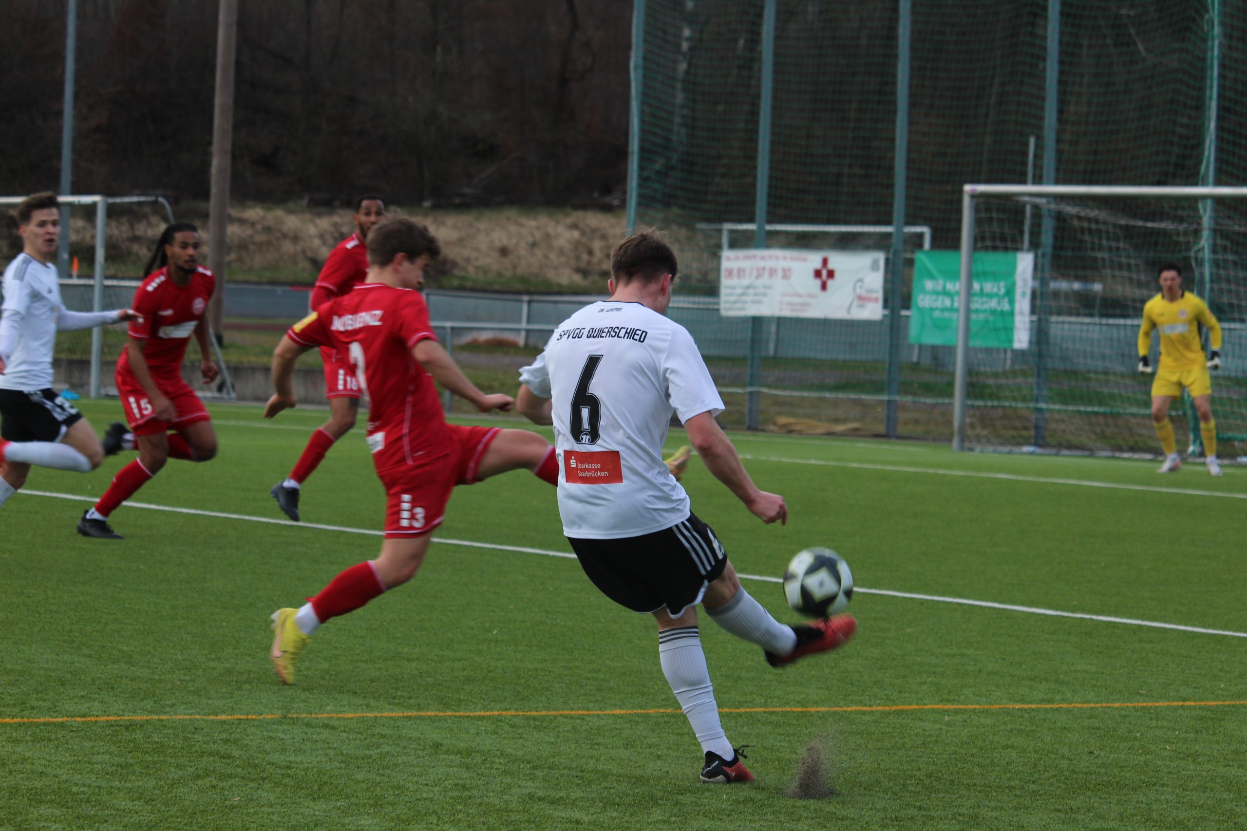 Quierschied hatte nach 15 Minuten die große Gelegenheit auf den Ausgleich. Nach einem Einwurf und zweifacher Kopfballverlängerung landete die Kugel bei Marcel Ecker. Dieser traf jedoch den Ball nicht richtig, der letztendlich am linken Pfosten vorbei trudelte.