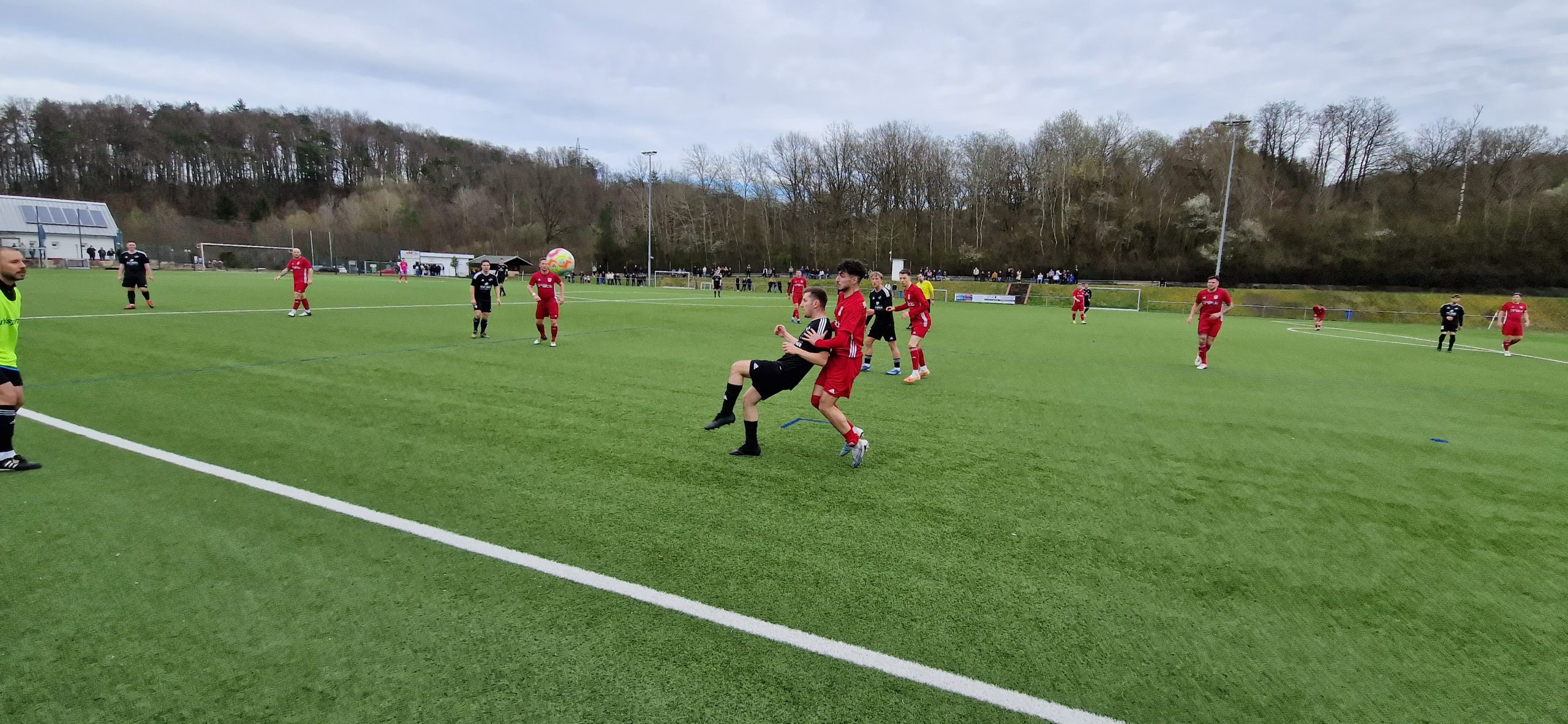 Etwas aus dem nichts konnte die Heimelf dann das 1:0 erzielen. Keeper Yannick Schneider musste bei einem hohen Ball eingreifen, der Ball blieb aber scharf und Jannic Müller konnte die Führung herstellen.