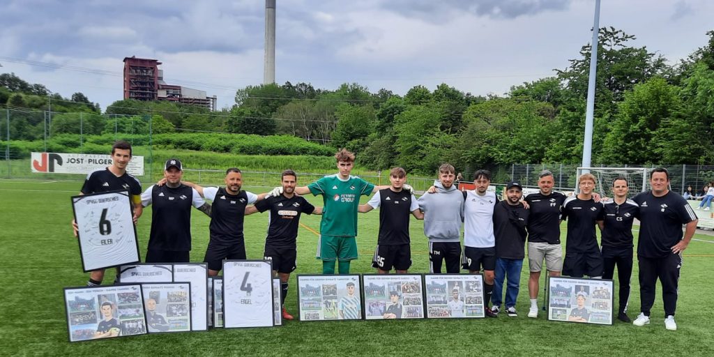 Vor dem Spiel wurden auf Seiten der Wambe verdiente Spieler und Trainer verabschiedet. Yannik Eiler ist dabei allen voran zu nennen. Unser Kapitän hat immer nur für unsere Sportvereinigung Fußball gespielt, in der Jugend und Aktiv. Das ist nicht selbstverständlich! Dabei konnte er einige große Erfolge feiern. Yannik beendet seine Laufbahn. Auch unser langjähriger Spieler Dominik Engel hört mit dem Aktivenfußball auf und wurde genauso mit großem Applaus verabschiedet. Ein großes Dankeschön erhielt auch unser Trainer Matthias Podevin, der in den 2 Jahren als Verantwortlicher gute Arbeit geleistet hat, in dem er die Mannschaft sehr verjüngt- und sie in das Aufstiegsrennen um die Verbandsliga geführt hat. Auch Co-Trainer Domenic Mangione und die Spieler Tim Martin, Yannick Schneider, Dario Kirch und unser Quierschieder Bub Justin Lippert bekamen zum Abschied ein Dankeschön überreicht. Auch an dieser Stelle noch einmal Danke an alle und alles Gute für die Zukunft!