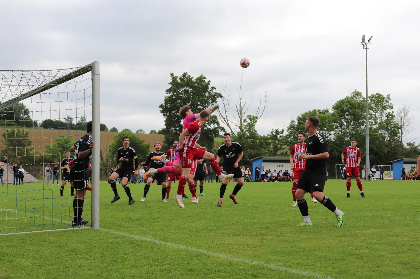 Am vergangenen Sonntag war es endlich soweit. Nachdem unsere Mannschaft am vergangenen Mittwoch im packenden Entscheidungsspiel gegen Rockershausen die Vizemeisterschaft klarmachen konnte, spielte man nun das langersehnte Relegationsspiel auf der Sportanlage in Düren gegen de Vertreter aus dem Westsaarkreis. Unsere Truppe ging voller Euphorie, jedoch als kleiner Außenseiter gegen den letztjährigen Verbandsliga-Absteiger in die Partie. Weiterhin hatte man große Personalsorgen, da immer noch die langzeitverletzten Spieler fehlten, ebenso war Matthis Maurer nach der roten Karte vom Rockershausen-Spiel gesperrt. Pech hatte man dann auch noch, als Lars Michely sich beim Aufwärmen verletzte und später in der Halbzeit bereits vom Feld musste. Allerdings kehrte Nico Jungmann nach einer längeren Ausfallzeit zurück in die Startelf.