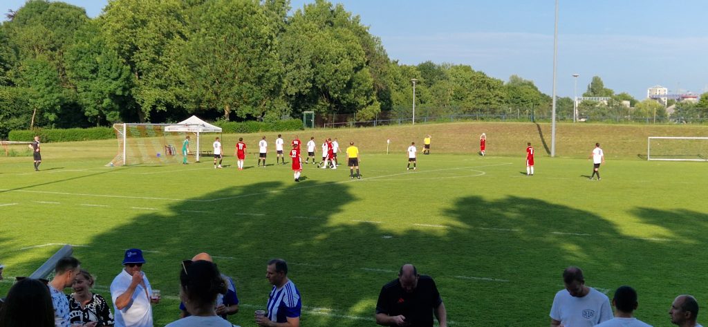 Jetzt sollte es schwer werden für unsere Mannschaft, bei heißen Temperaturen auf dem Saarbrücker Rasenplatz. Aber angefeuert von den vielen Quierschied Fans gab unsere Mannschaft alles und kam durch einen Doppelschlag von erneut Andi Breier zum 2:3 und nach einem Lupfer von Markus Woll über den herauseilenden Torwart sogar zum 3:3 Ausgleich. Es ging in die Verlängerung.