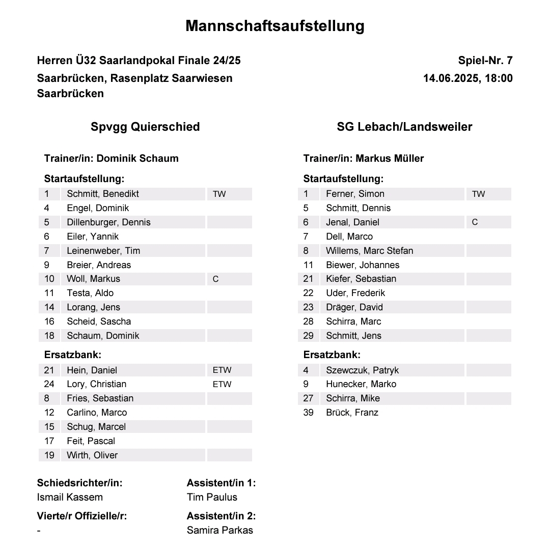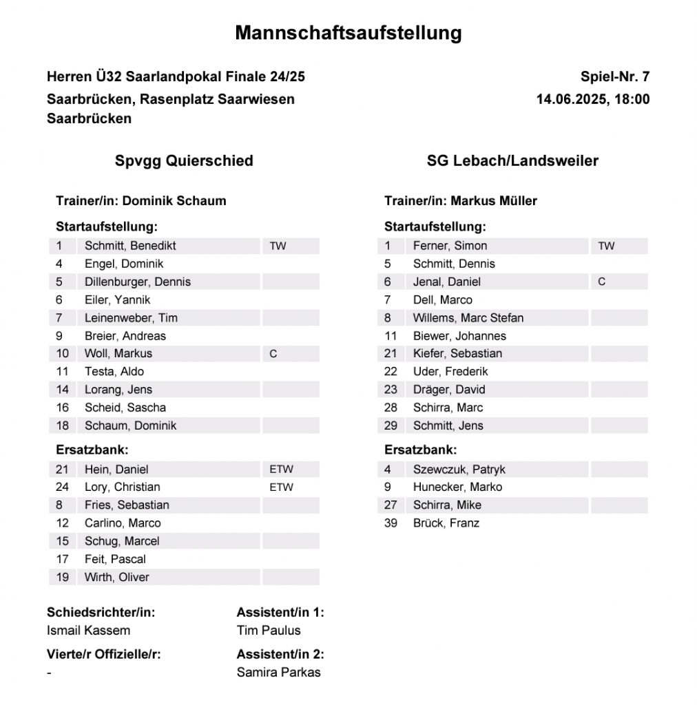 Diese verlief spannend, unsere Mannschaft war dabei – wie in den 70 Minuten davor – das aktivere Team, während Lebach/Landsweiler sich auf die Abwehrarbeit konzentrierte und auf Konter lauerte. Tore fielen aber keine mehr, sodass es wie bereits beim Halbfinale in Auersmacher in das Elfmeterschießen ging. Und das gewann unser Team am Ende mit 4:2, sodass der offizielle Endstand 7:5 n.E. lautete. Quierschieds AH ist damit Saarlandpokalsieger!