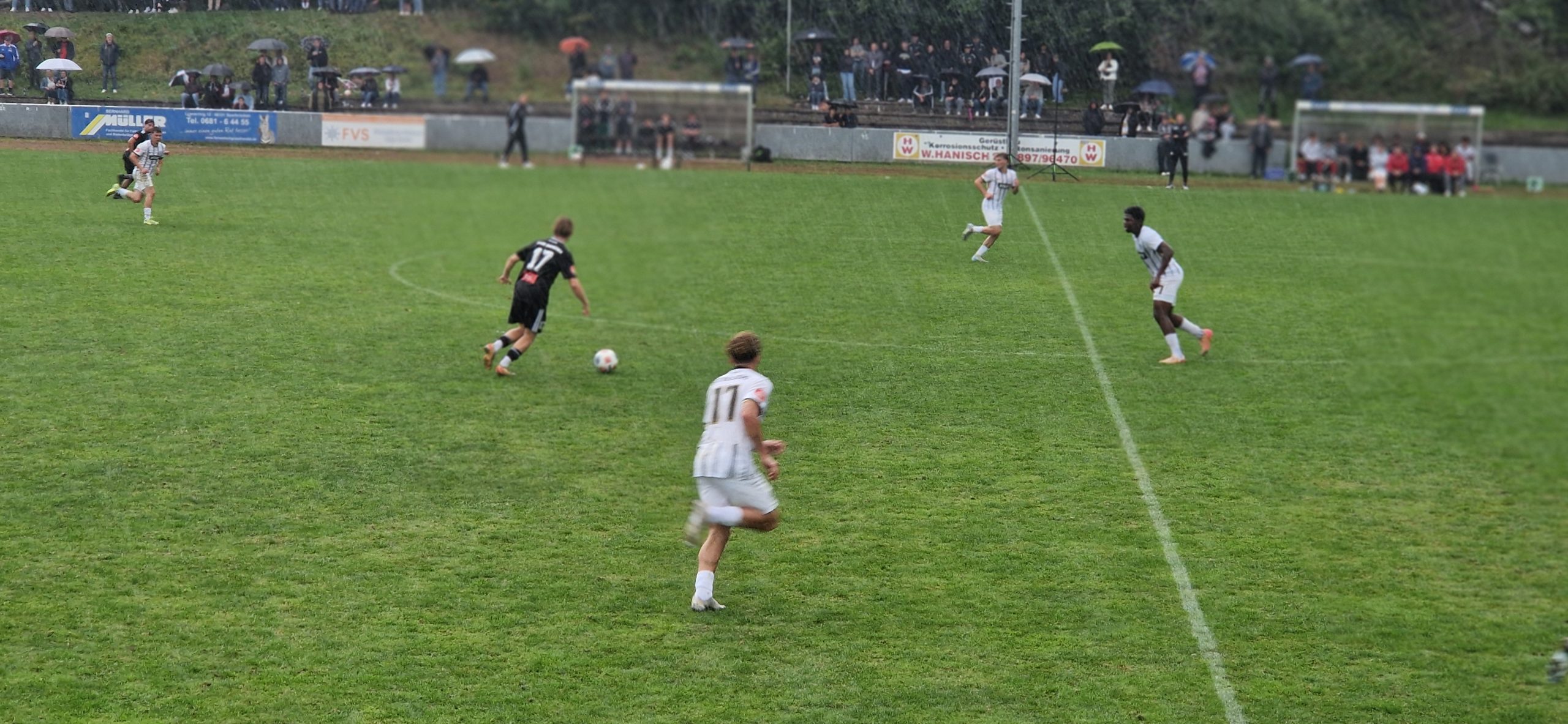 Das Spiel begann mit Feldvorteilen für unsere Gäste, die sich wie erwartet technisch versiert und sicher am Ball präsentierten. Die erste Annäherung vor das gegnerische Tor gab es für die SVE nach 10 Minuten, ein Querpass von Alessandro Lazzano wurde in der Mitte verpasst. Sieben Minuten später spielte Corneille Bala Bindzi aus der Viererkette einen Ball stark in die Spitze, Lazzano nahm diesen an, legte kurz danach quer auf Salif Cissé und der Elversberger Captain traf zum 0:1. Danach kontrollierte die SVE die Partie, doch große weitere Chancen gab es nicht. Unsere Mannschaft kam nur selten vor das gegnerische Tor, die wenigen Abschlüsse waren ungefährlich. Nach 35 Minuten gab es noch eine Möglichkeit für die Gäste, als Lazzano nach einem Abwehrfehler zum Schuss kam, aber an Nicolas Schäfer scheiterte. Mehr passierte in der ersten Halbzeit nicht.