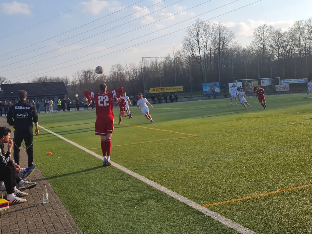 Doch schon eine Minute später konnte Jonathan Böffel ausgleichen, er setzte sich in der Luft durch und traf zum 1:1. In der 9. Minute köpfte Bliesmengen-Bolchen-Spieler Lukas Becker über unser Tor. Und in der 15. Minute nutzten die Gäste eine Umschaltsituation nach einem unnötigen Quierschieder Ballverlust und trafen durch Jannik Bergmann zum 1:2. Die Wambe kamen danach immer wieder mal vor das Tor, doch aussichtsreiche Möglichkeiten fanden nicht den Weg ins Tor. Dann kam allerdings die 37. Minute. Niklas Backes wurde seitlich am Strafraum gefoult. Philipp Wunn brachte den Freistoß scharf rein und Nico Christmann verwandelte per Kopf zum 2:2. Das war auch der Halbzeitstand.