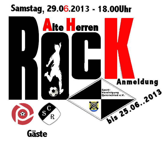 Mit Freude erwarten wir an diesem Abend die Altkicker des SC Reisbach und die Knappen. Bevor es dann zum „Abrocken“ kommt, treten unserer Oldies gegen die „Reisalten an“. Die „BKS“-Jungen werden im Anschluss eventuell gegen unser „Uralt-Team“ antreten, gefolgt von dem abschließenden Altrockereinlagehobbywitzspiel mit Beteiligung aller Anwesenden. Jeder der Gäste darf, kann und soll aktiv an den Spielen teilnehmen. Bringt die Ausrüstung mit – Ausreden gelten an diesem Tag nicht.