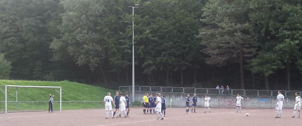Trainer Eiler entschied sich nach der langen Vorbereitung auf den letztjährigen Torwart der 3. Mannschaft, Andreas Jung zwischen den Pfosten. Dieser musste bereits nach zwei Minuten sein ganzes Können unter Beweis stellen, als ein Scheidter Spieler unmitellbar vor ihm frei zum Schuss kam – „Anton“ den Ball aber glänzend abwehren konnte. Unsere Mannschaft brauchte einige Zeit, um auf dem ungewohnten, und knüppelharten Brascheplatz ins Spiel zu finden. Die Zuschauer sahen – auch dem Geläuf geschuldet – viele technische Fehler beider Teams. Dafür aber auch eine intensive und umkämpfte Partie. Nach 17 Minuten gab es an der Strafraumgrenze der Wambe einen unnötigen Ballverlust. Ein Akteur der Heimelf zog über links in den Strafraum und legte den Ball stramm quer. Ein Mitspieler musste nur noch einschieben – das 1:0 für Scheidt. Danach hatte die Heimelf eine weitere dicke Chance, ein Scheidter lupfte den Ball aber über den herauseilenden Jung und das Tor. Quierschied nahm nach dem Gegentreffer das Heft in die Hand, Scheidt konzentrierte sich auf die Defensivarbeit. Nach einem schönen Doppelpass zwischen Oliver Wirth und Walter Brückmann schloss Brückmann aus 25 Metern Volley ab. Sein schöner Schuss verfehlte nur knapp den Winkel. Das war die bis dahin beste Chance der Quierschieder Mannschaft. Die Spvgg bestimmte bis zum Pausentee das Geschehen, doch meist war am Strafraum des Gegners Endstation. Es fehlte einfach jemand, der Torgefahr ausstrahlte. Dies änderte Coach Eiler in der zweiten Halbzeit. Berufsbedingt schaffte es Andreas Breier erst zur zweiten Hälfte nach Scheidt. Er kam für Matthias Jakob in die Partie und orientierte sich gleich nach vorne. Keine zwei Minuten waren nach dem Wiederanpfiff gespielt, da machte sich Breier direkt bemerkbar, indem er einen Freistoß zentral an der Strafraumgrenze herausholte (siehe Bild oben). Olli Wirth hämmerte den Ball auf den Kasten, der gute Torhüter von Scheidt konnte zwar abwehren, war aber gegen den Nachschuss von Thuliv Leo war er chancenlos – 1:1. Quierschied hatte jetzt seine beste Phase des Spiels und drängte auf das zweite Tor. Dies fiel auch in der 54. Minute. Erneut setzte sich Breier durch und schoss den Ball aus kurzer Distanz und spitzem Winkel zum 2:1 in die Maschen. Scheidt wirkte geschockt, ließ weitere Chancen der Wambe zu. Wieder war Breier beteilligt, doch sein Zuspiel in den Rückraum fand keinen Abnehmer, sodass eine der besten Möglichkeiten verpuffte. Ein weiterer Treffer wollte der Wambe nicht gelingen. Scheidt hatte nach seinem Führungstor in der ersten Halbzeit keine Torszenen mehr, erstmals traten sie in der 69. Minute wieder in Erscheinung. Wieder leitete ein fahrlässiger Ballverlust an der Mittellinie einen Konter der Heimelf ein. Diese spielten schnell in die Sturmspitze, ein Spieler umkurvte Jung und schob zum 2:2-Endstand ein.