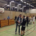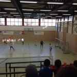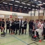 Bereits am Samstag zeigte unsere Mannschaft gute Leistungen. Mit einem 2:1 Sieg über den Saarlandligisten Spvgg Hangard sowie zwei weiteren Siegen gegen Hellas Bildstock II (7:0) und Türkiyem Sulzbach (4:1) sicherte sich die Truppe von unserem Coach Markus Woll den Gruppensieg. Am Sonntag ging es dann mit der Zwischenrunde weiter. Auch hier waren die Wambe nicht zu stoppen. Erneut gab es drei Siege. Gegen Spiesen gewann die Spvgg mit 8:0, gegen Limbach 3:2 und gegen Hellas Bildstock I 6:0. Sagenhafte 17:2 Tore in 3 Spielen sorgten dafür, dass Quierschied in der Halle als Favorit auf den Turniersieg gehandelt wurde. Ausgerechnet im Halbfinale zeigte sich die Spvgg erstmals unkonzentriert. Gegen den Gastgeber DJK Bildstock lag man bereits nach 5 Minuten mit 0:3 zurück. Trotzdem kämpfte sich die Spvgg wieder heran, zwei Minuten vor Schluss stand es nur noch 3:4. Wie in der letzten Woche beim entscheidenden Spiel gegen Hanweiler (Turnier in Kleinblittersdorf) erhielt Quierschied in den Schlussminuten eine Zeitstrafe. In Unterzahl kassierte man noch das 3:5 und verpasste somit den Finaleinzug. Im Spiel um Platz 3 ging es erneut gegen Verbandsligist Limbach. Die Zuschauer sahen eine flotte und spannende Partie in dem eher ungeliebten kleinen Finale. 2:2 stand es nach der regulären Spielzeit und 3:3 nach Verlängerung. Somit musste das Neunmeterschiessen her. Kai Berrang hielt den ersten Schuss von Limbach, die danach einen weiteren Fehlschuss an die Latte hatten. Die Spvgg traf souverän und gewann die Partie mit 7:4. Unter dem Strich ein sehr gutes Turnier unserer Mannschaft. Mexhid Kadrija erzielte 12 Tore und traf am Samstag mit einem schönen Fallrückzieher wohl auch zum Tor des Turniers. Die DJK Bildstock gewann das Turnier gegen Hangard ebenfalls nach Neunmeterschiessen.