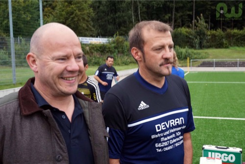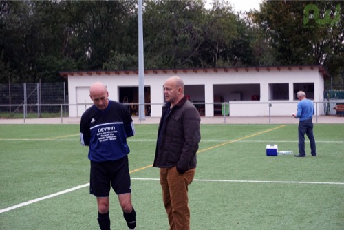 Beim aufwärmen war bereits unseren Spielern eine hohe Motivation anzumerken, wie auch die Spannung gegenüber dem Gegner. Die Partie wurde dann ein paar Minuten später angepfiffen und bereits nach kurzer Zeit stand es 1:0 für unsere Oldies. Doch der Schiri gab den Treffer nicht – 0:0, er war der Meinung Abseits gesehen zu haben obwohl er weder auf gleicher Höhe war, noch sich großartig bewegte. Bernd Ursprung, der unter den Zuschauern weilte, selbst schon für die SF Köllerbach spielte und noch auf Ballhöhe stand zweigte an das es sich nicht um Abseits handelte. In der Folge kam es immer wieder zu Fehlentscheidungen, die immer auffälliger gegen unser Team waren.